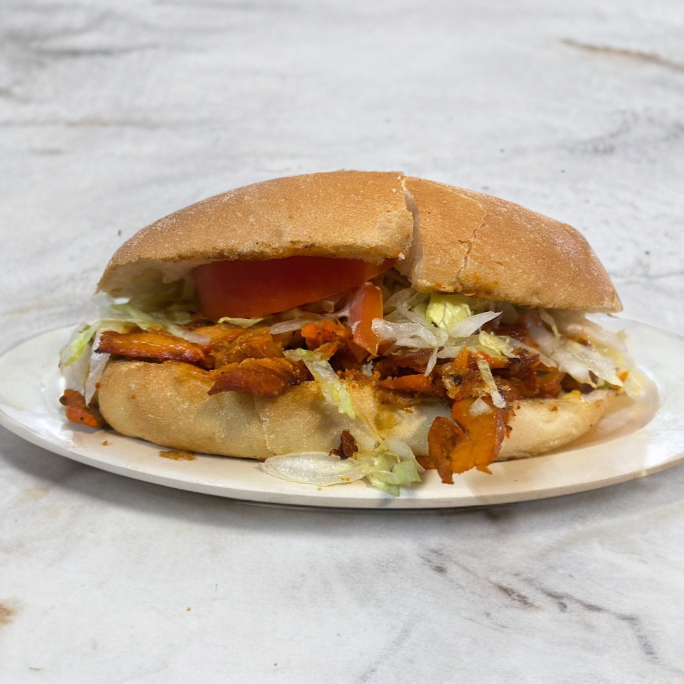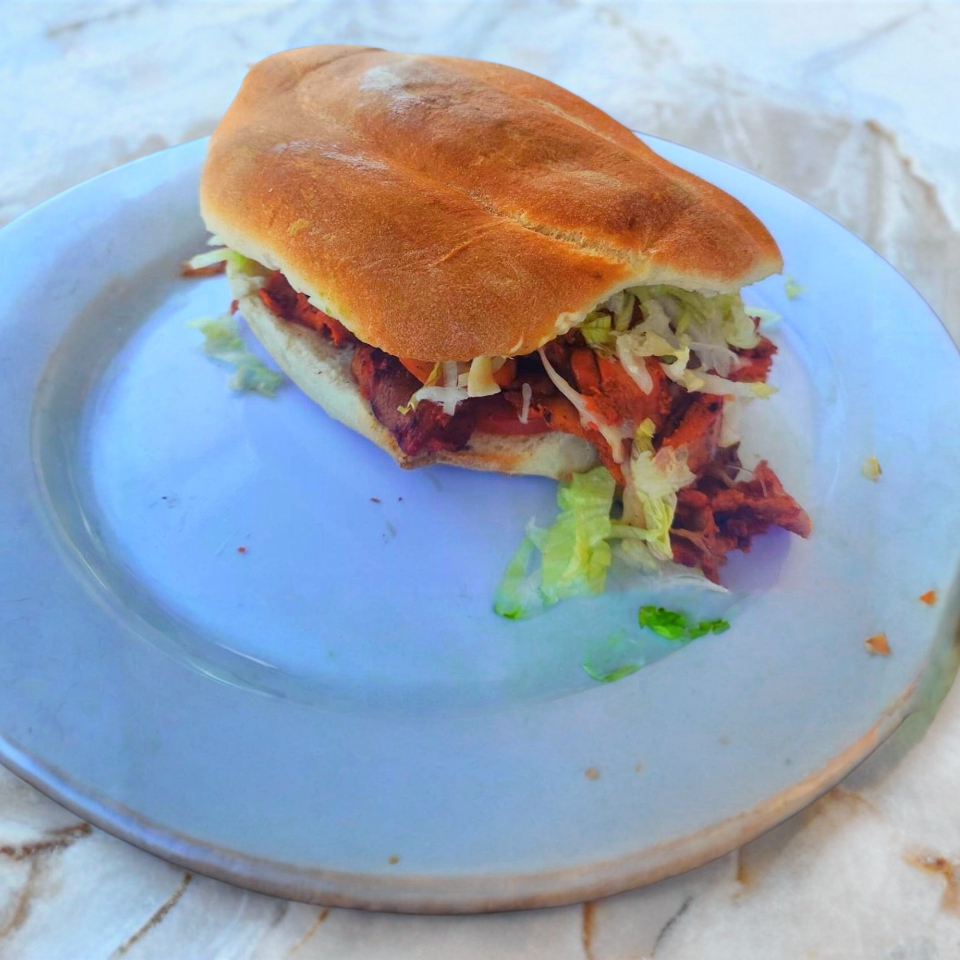 Torta de Pastor preparada con lechuga, tomate y aguacate