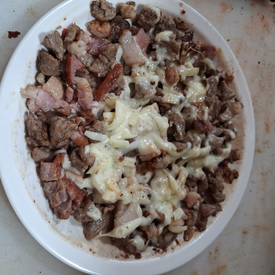 CARNE DE COSTILLA CON QUESO Y TOCINO