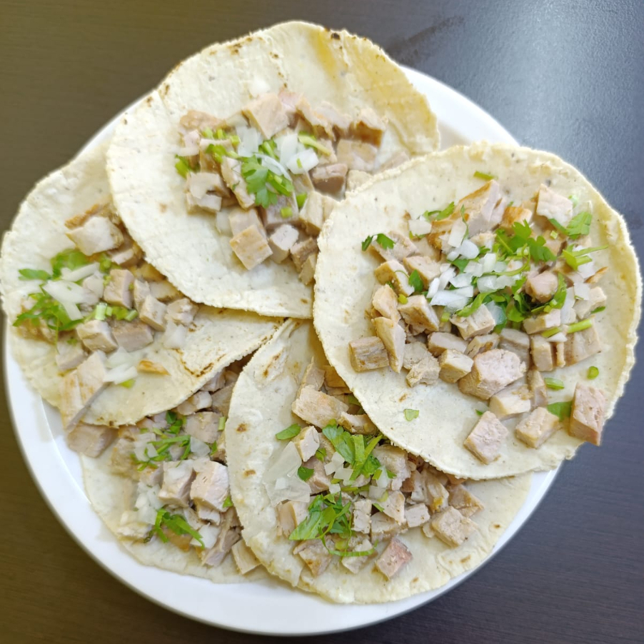 5 TACOS DE CHULETA CON CEBOLLA Y CILANTRO