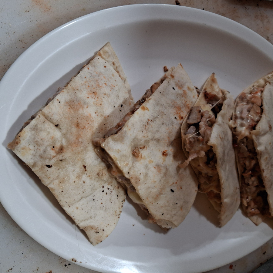 costra de queso con carne de chuleta en tortilla de harina