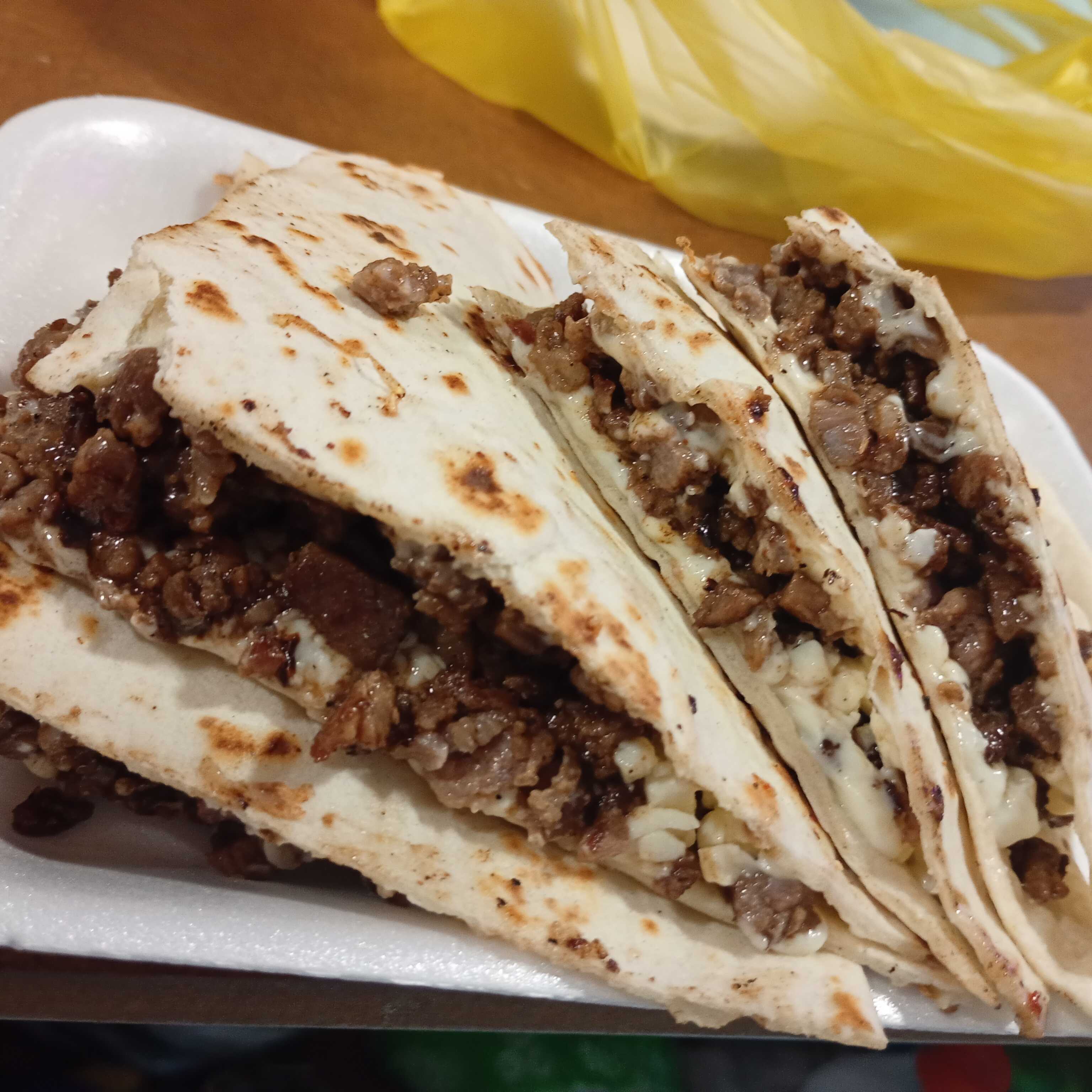 Bistec, cebolla, tomate, chile jalapeño y queso