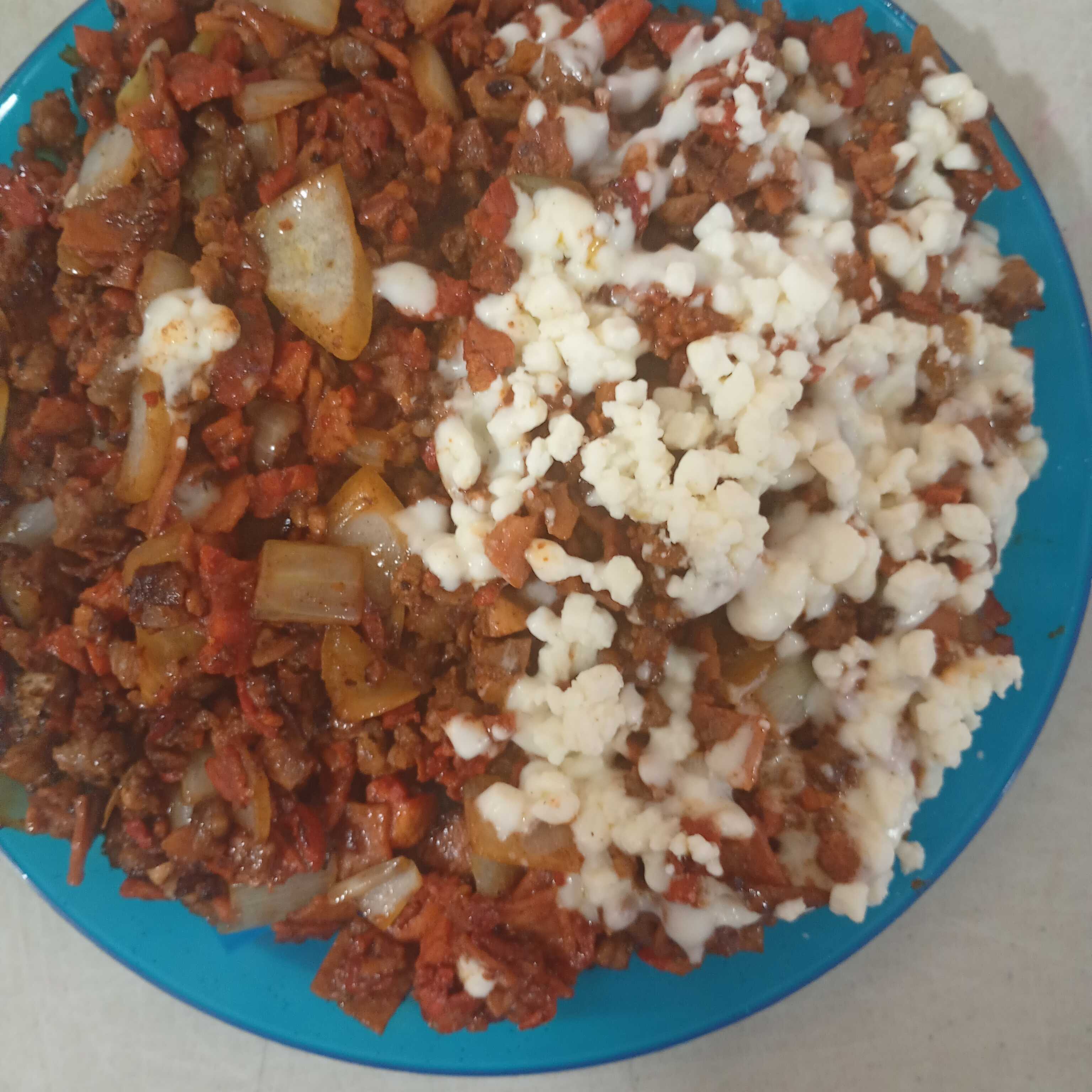 Bistec, chorizo y queso