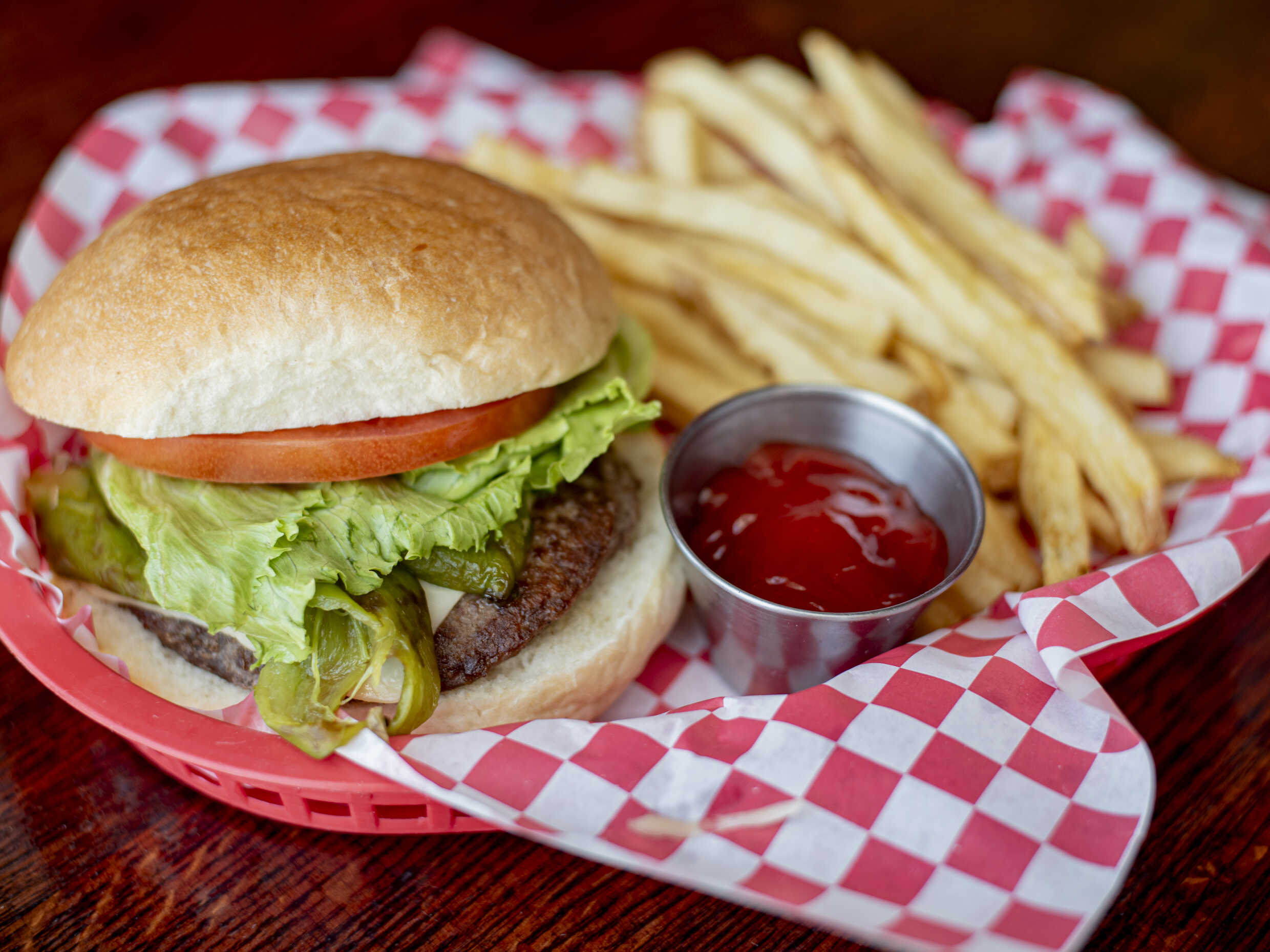 150g Carne de Sirloin,Tocino ahumado en nogal, Delicioso Pan Artesanal, Queso Menonita, Lechuga, tomate, aderezada con mayonesa y mostaza.