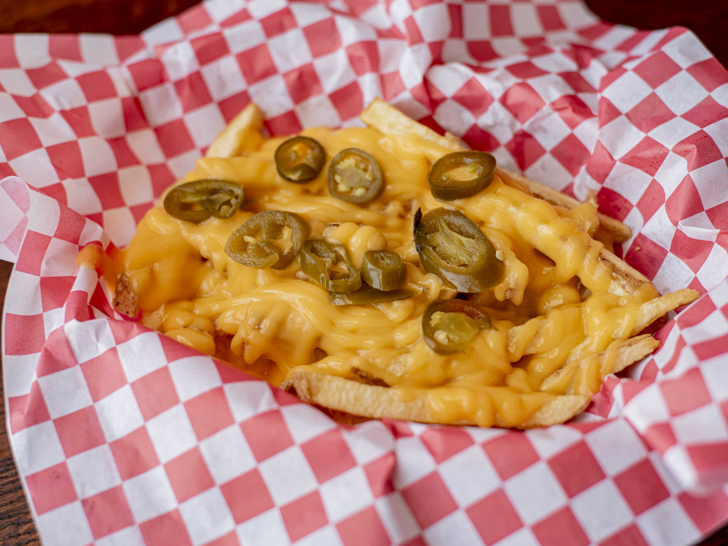 6 Boneless, 100% pechuga pollo premium empanizado manualmente , bañados en queso chedar derretido montados en una cama de papa fritas a la francesa cortadas al momento.