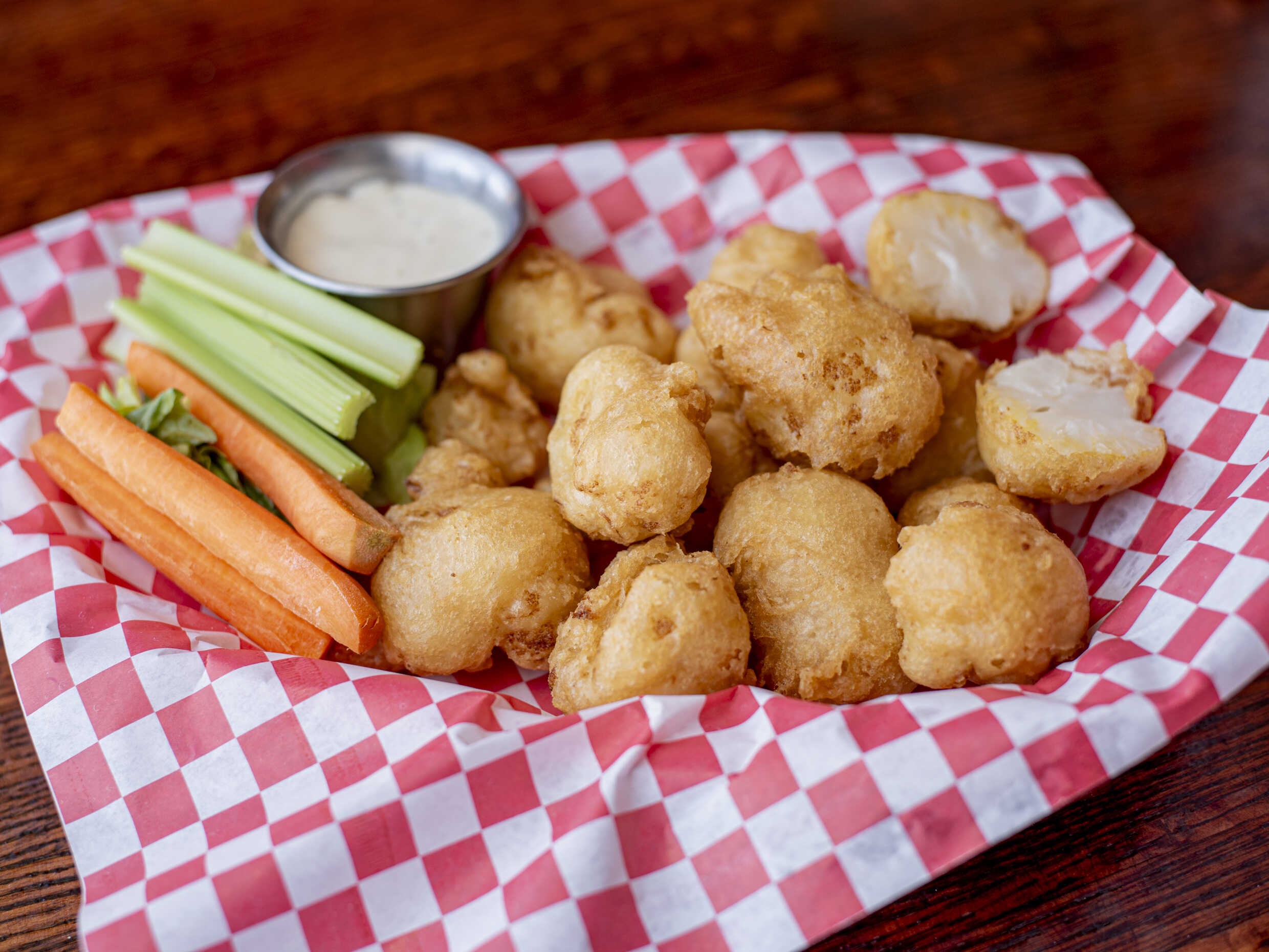 Aproximadamente 32 deliciosas alitas, empanizadas y cocinadas al momento bañadas en tu salsa favorita, acompañadas con apio y zanahoria en una cama de lechuga Orgánica y aderezo Ranch (2oz)