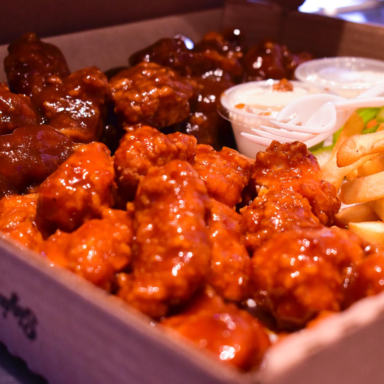 1.5 KG DE BONELESS + 1.5 KG DE ALAS + 400g PAPAS FRANCESAS + 100g DEDOS DE QUESO + 100g JALAPEÑOS RELLENOS + RANCH