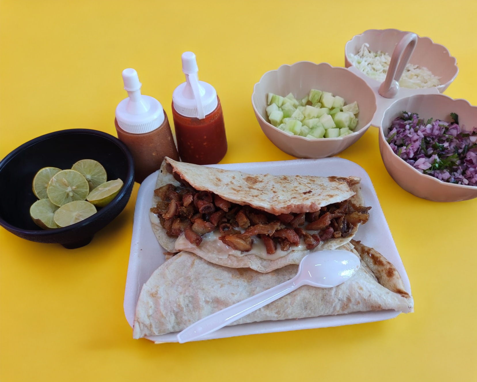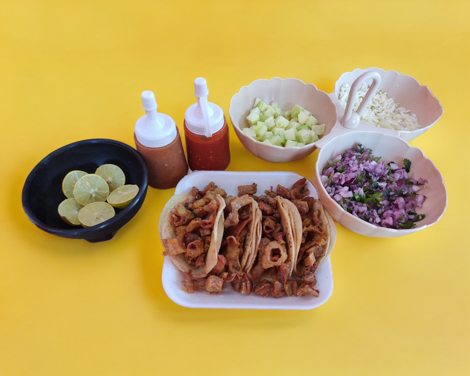 300gr de tripita aprox. 6 tortillas verdura y salsas
