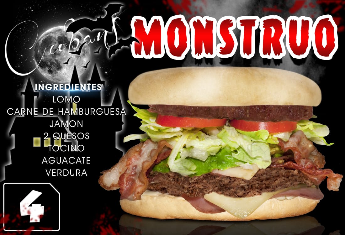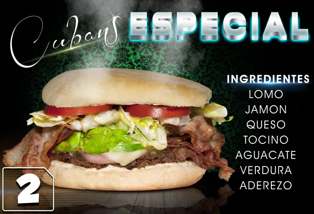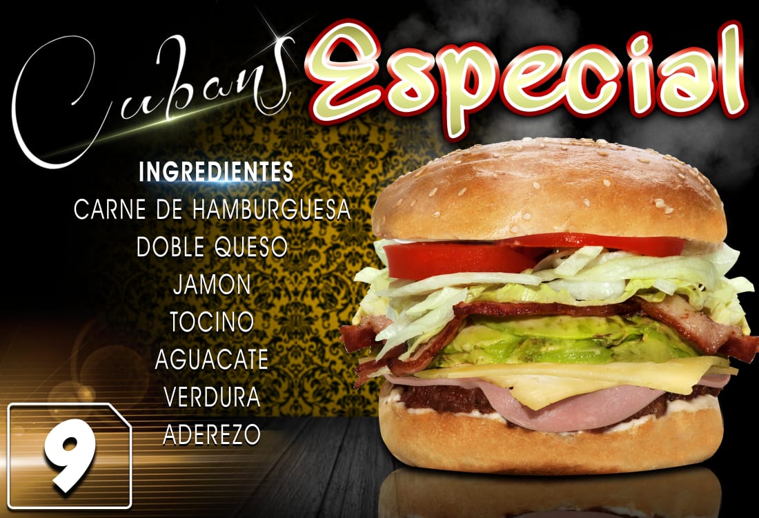 Lomo chuleta ahumada, carne de hamburguesa, jamon doble queso, tocino, aguacate, verdura y aderezo