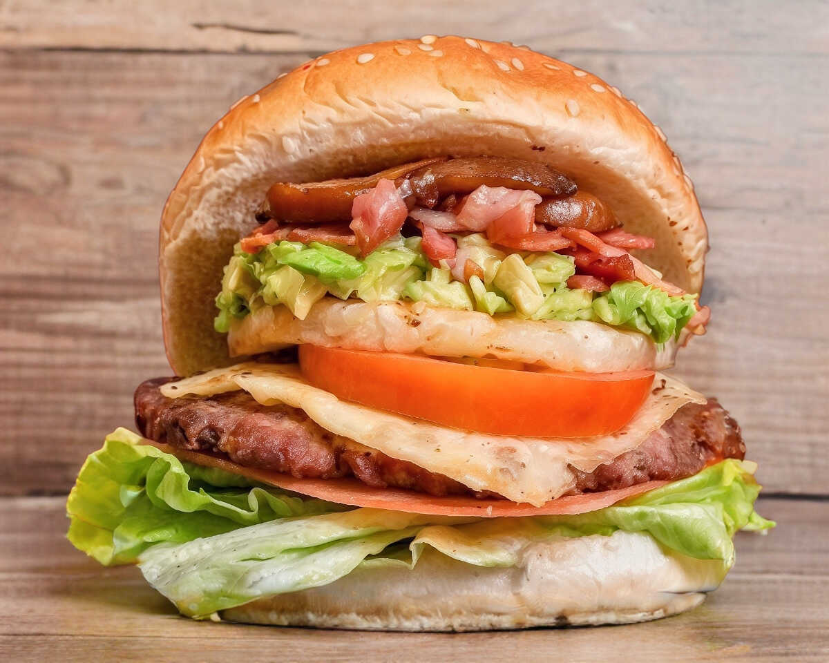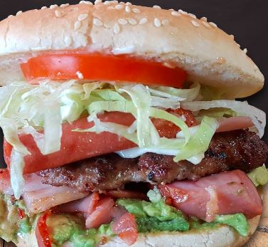 doble carne de hamburguesa y queso , aguacate , jamon , lechuga y tomate