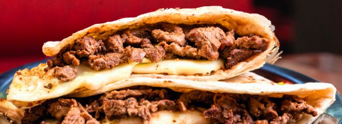 tortilla gigante de harina , bistec de res , frijoles y asadero