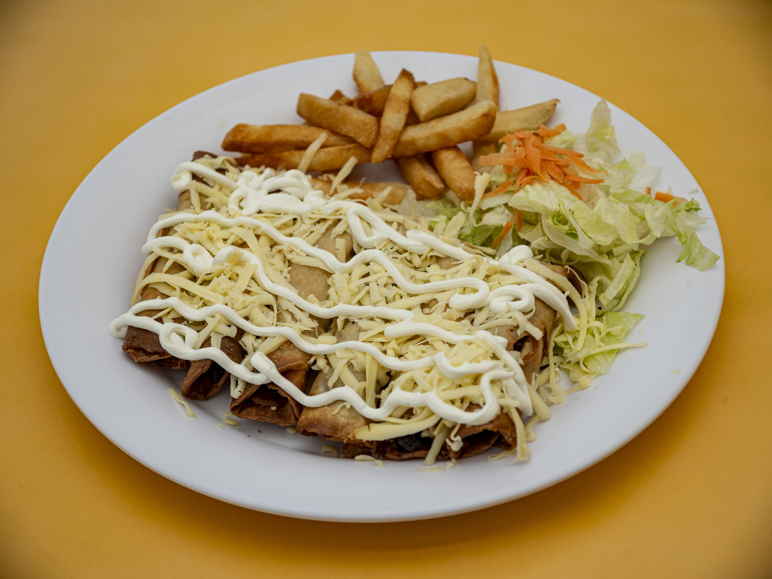 Rojos, verdes, chipotle o blancos acompañados de papas y ensalada.