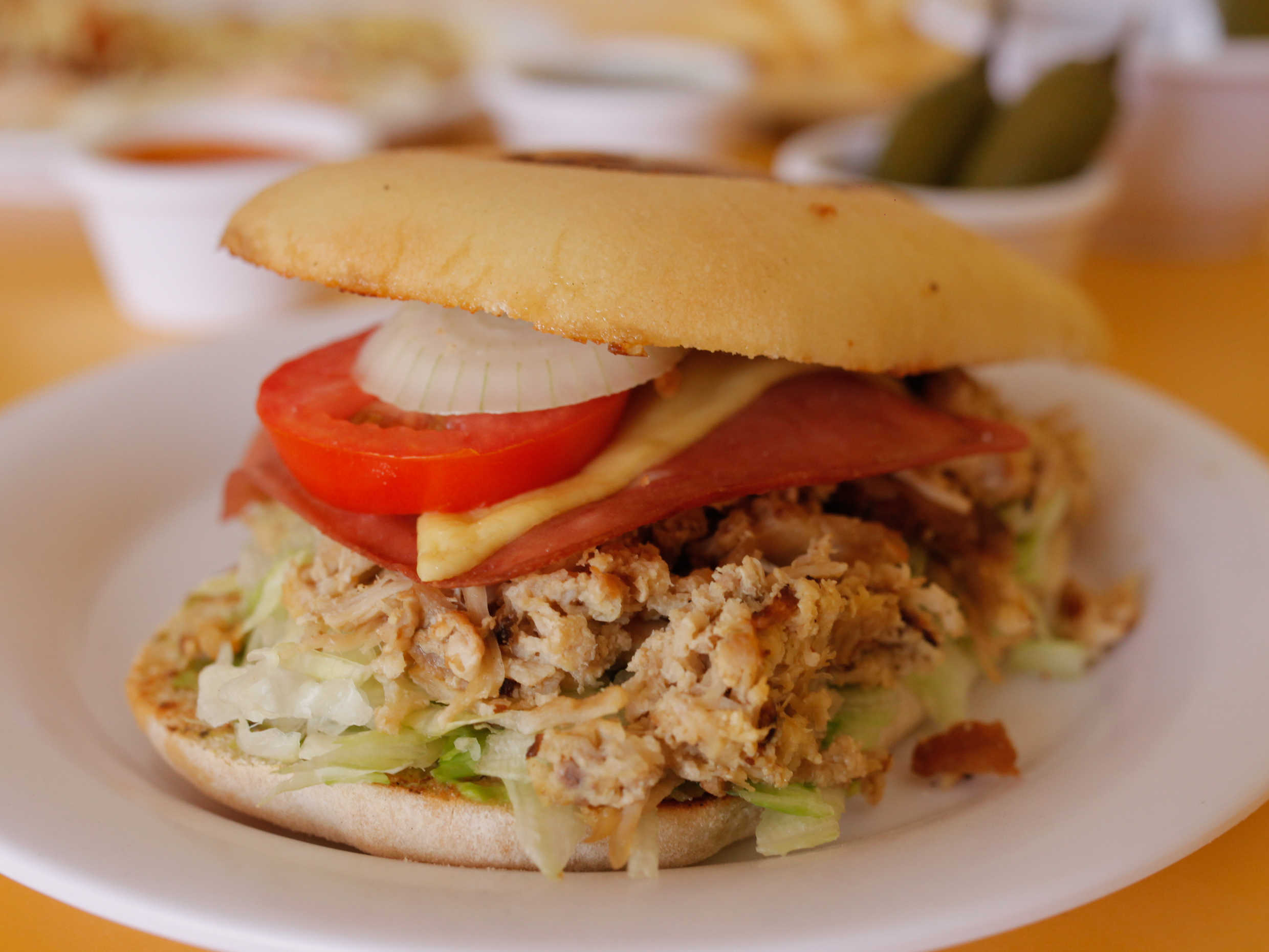 3 de jamón, doble queso, aguacate y incluye verdura y aderezo.