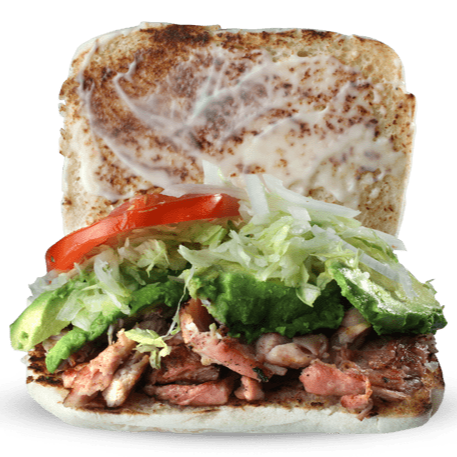 Bistec de Res, Jamon y Queso, Aguacate, Lechuga, Cebolla y mayonesa