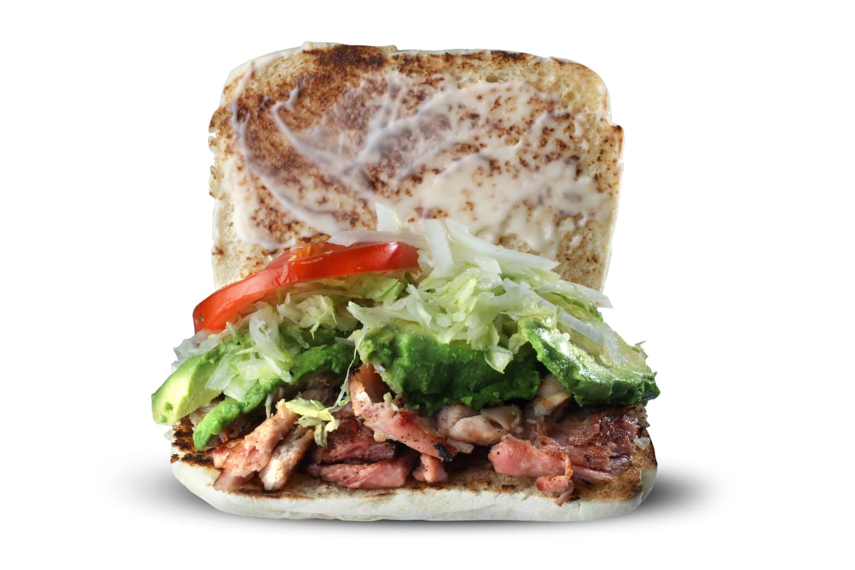 Pastor aguacate, lechuga, tomate, cebolla y mayonesa