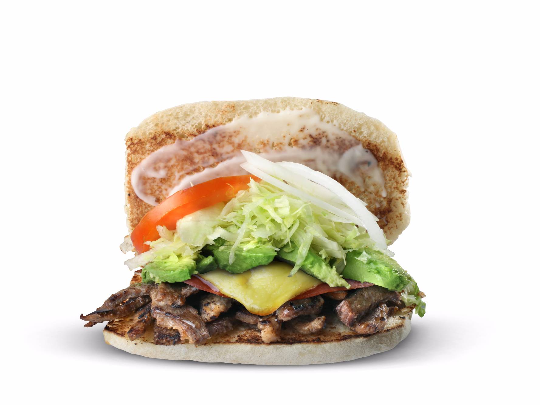 Bistec de Res, jamon y queso, aguacate, lechuga, tomate, cebolla y mayonesa