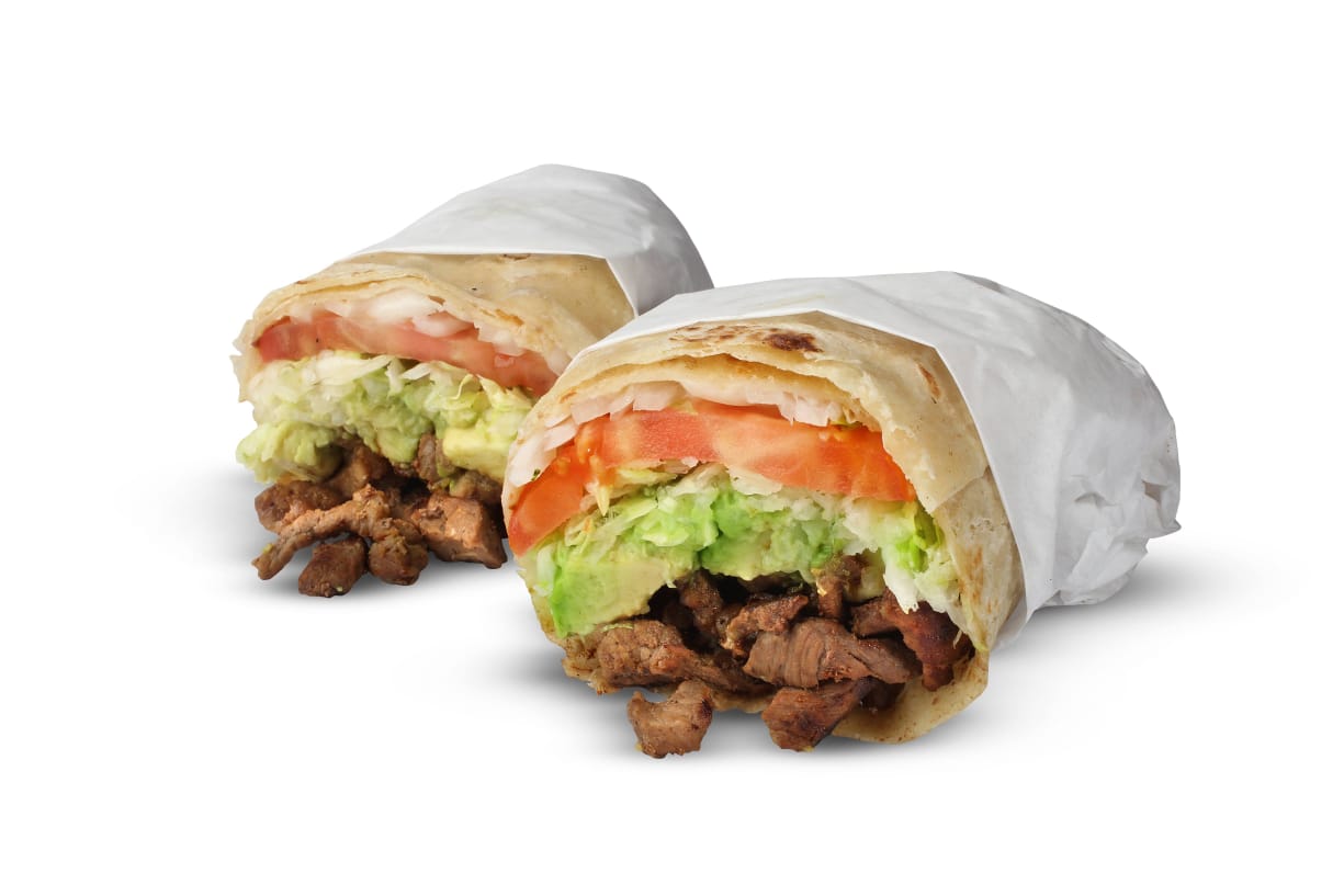 Carne, queso, aguacate, lechuga, tomate y aderezos