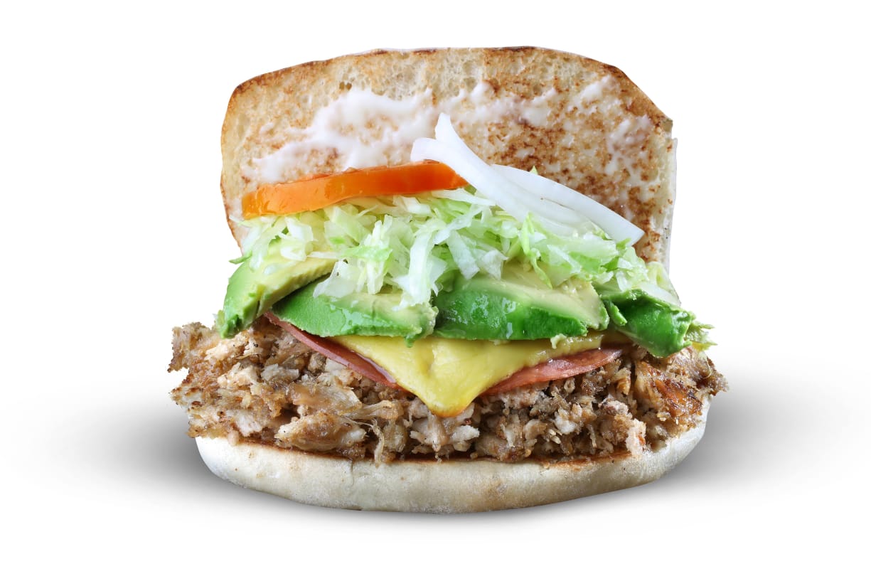 Opción vegetariana Lleva aguacate, lechuga, tomate, cebolla y mayonesa