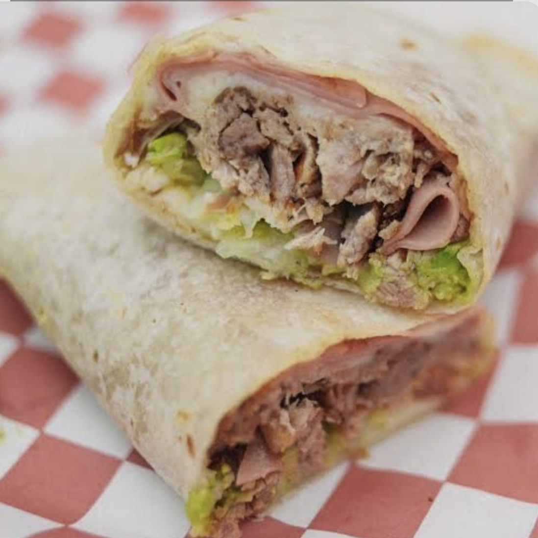 Lomo, jamón, queso, tocino, aguacate, lechuga, tomate y mayonesa