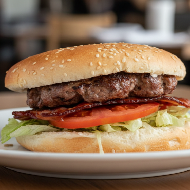 Pan de ajonjolí con carne de res, lechuga crujiente y tomate, ¡una combinación irresistible!"