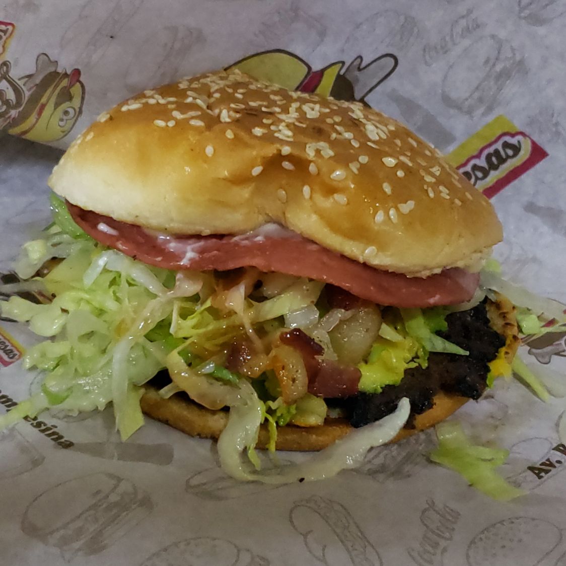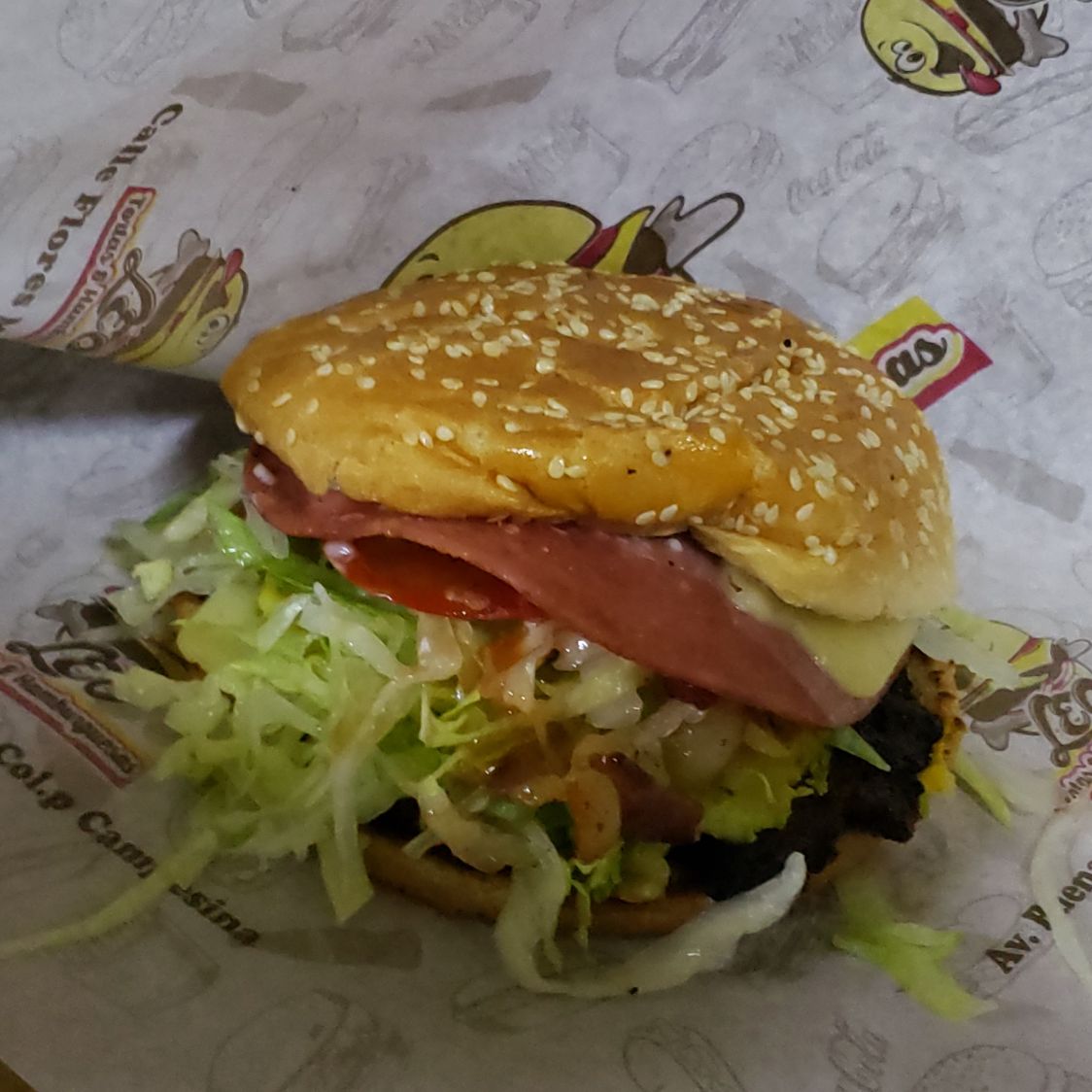 carne jugosa, jamón doradito, mezcla irresistible de dos tipos de queso fundido, salchicha campestre, tocino crujiente y aguacate cremoso. Acompañado con lechuga fresca, tomate jugoso y el toque perfecto de mayonesa, mostaza y catsup.