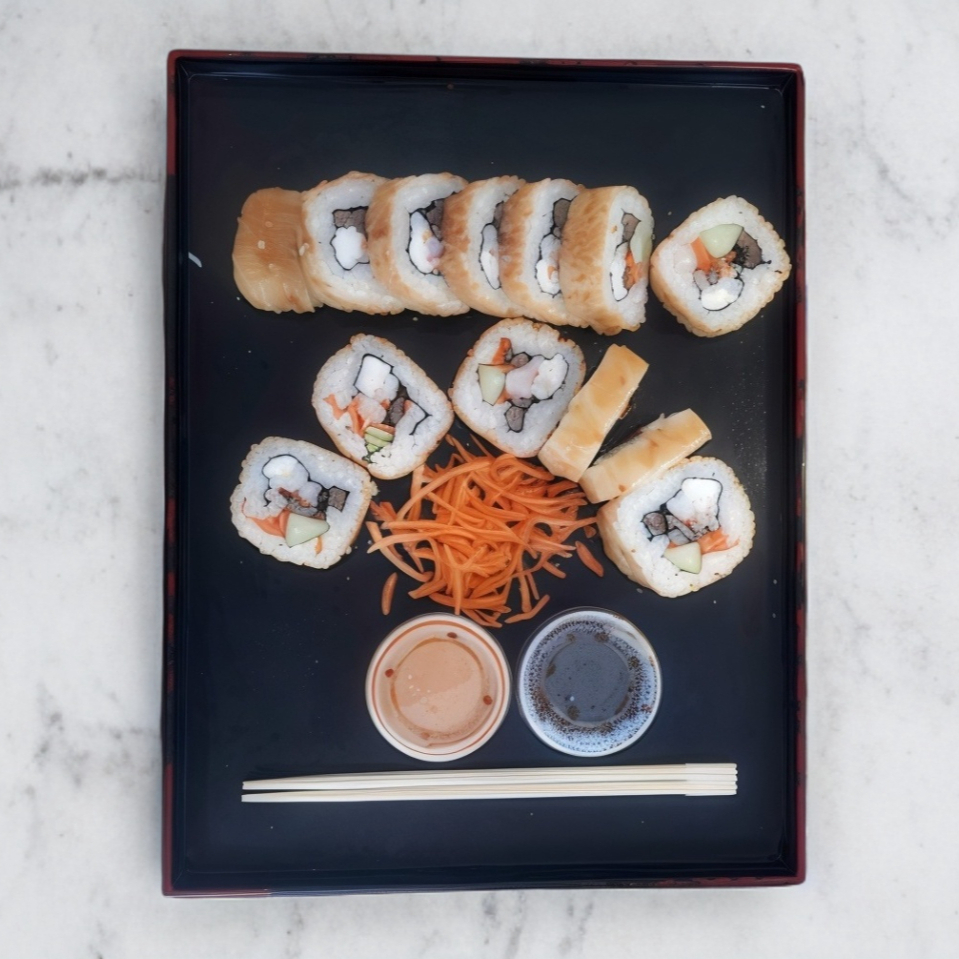 Aguacate, philadelphia, pepino, zanahoria y algas más 1 ingrediente.