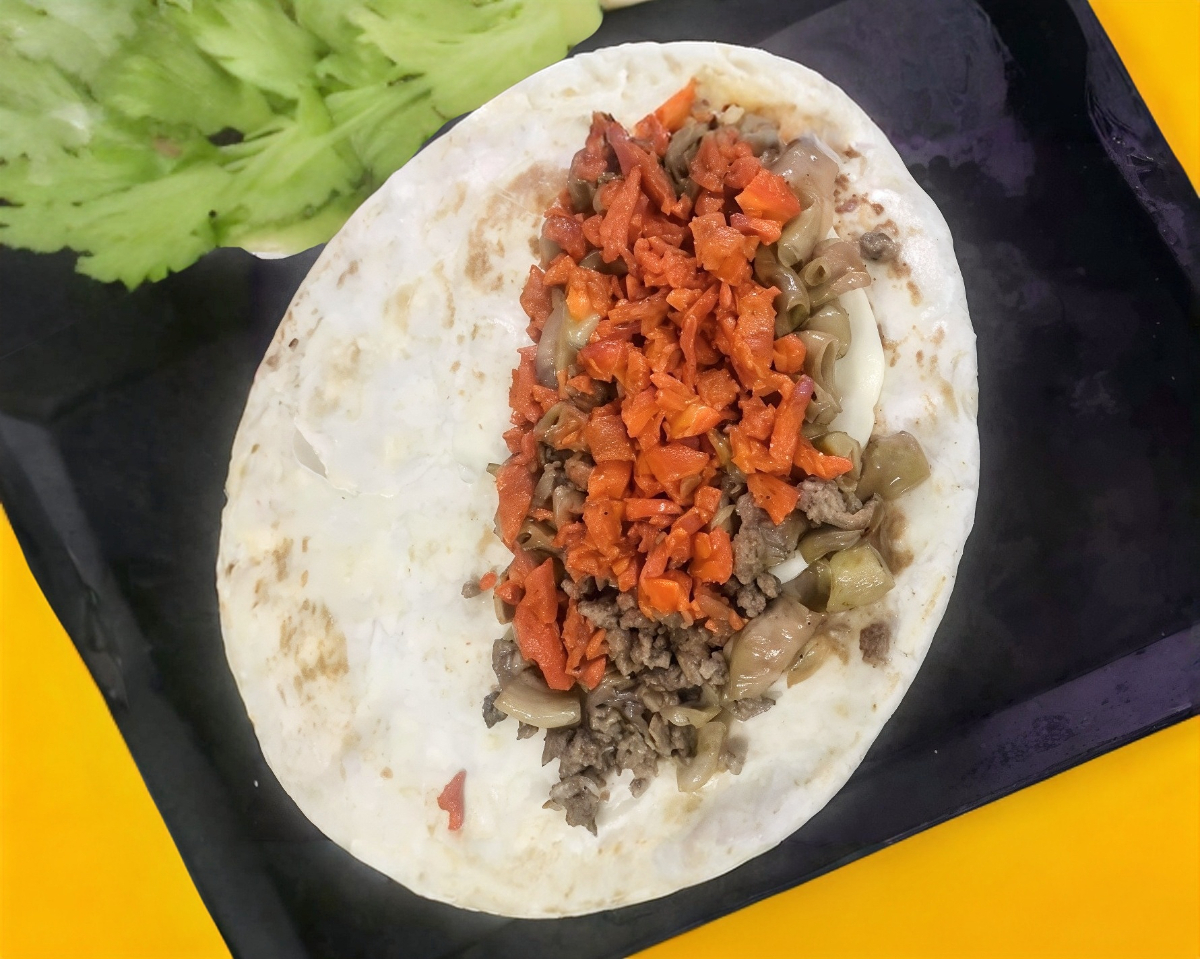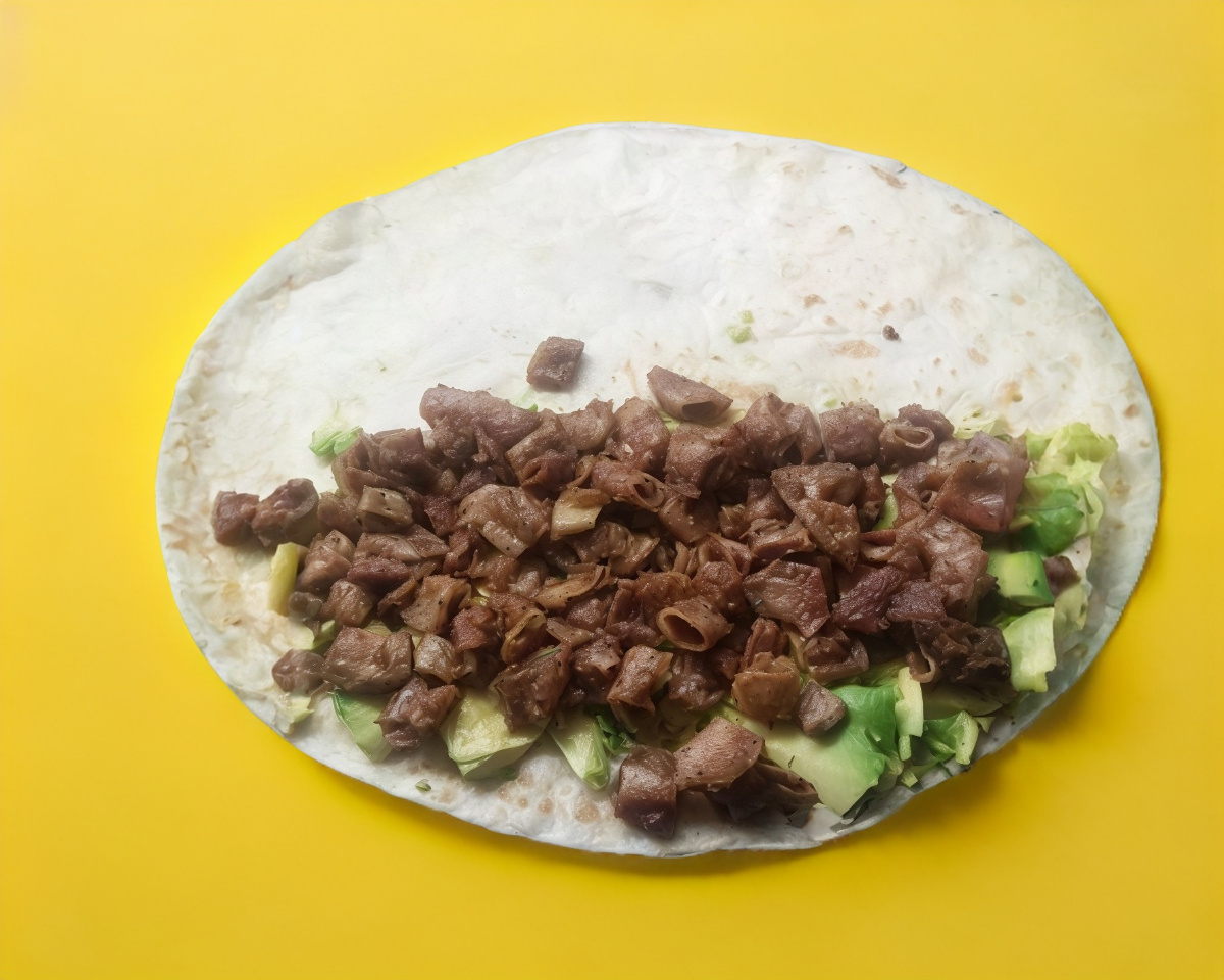 Contiene frijoles carne de asadero tripa y bistec, tortilla de maíz, salsa aparte (Personal)