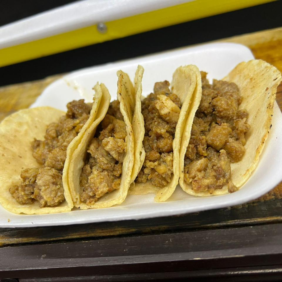 Orden de cuatro taquitos de ubre en tortilla de maíz