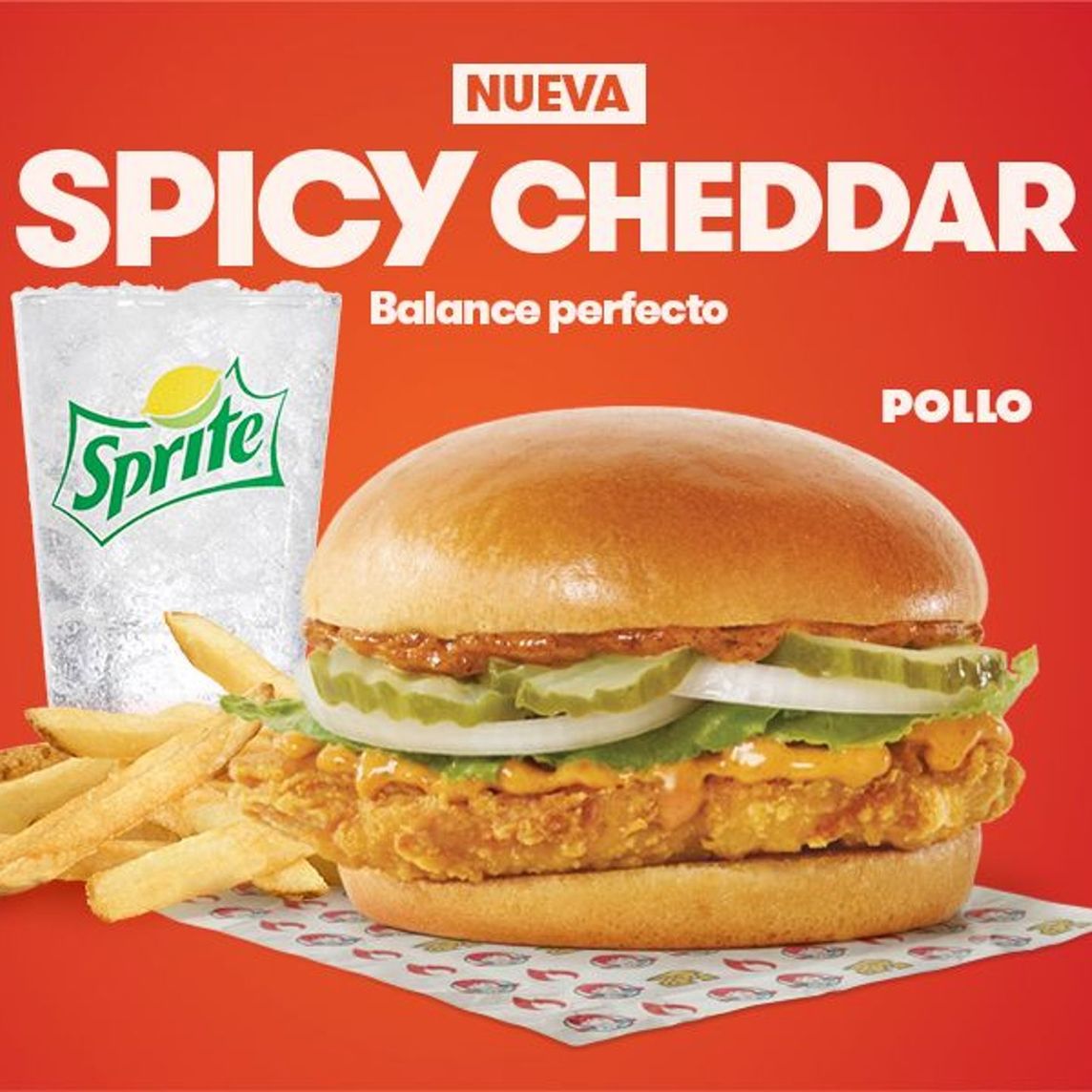 Una explosión de sabor que no falla: crujiente y jugoso Spicy Chicken, la mezcla perfecta de salsa Búfalo y Ranch, cebolla, jitomate, lechuga y pepinillos, todo servido en un pan estilo brioche.