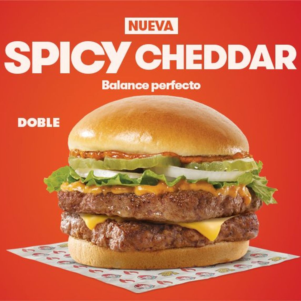 Jugosa carne 100% de res, cuarto de libra, fresca, nunca congelada, elaborada con una combinacion de queso cheddar y jalapeños, con tres tiras de tocino crujiente, todo entre un pan tostado calientito.