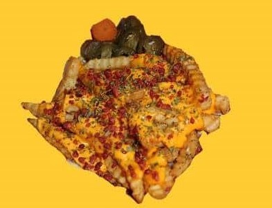 250 grs. de papas con queso amarillo, tocino deshidratado y perejil picado.