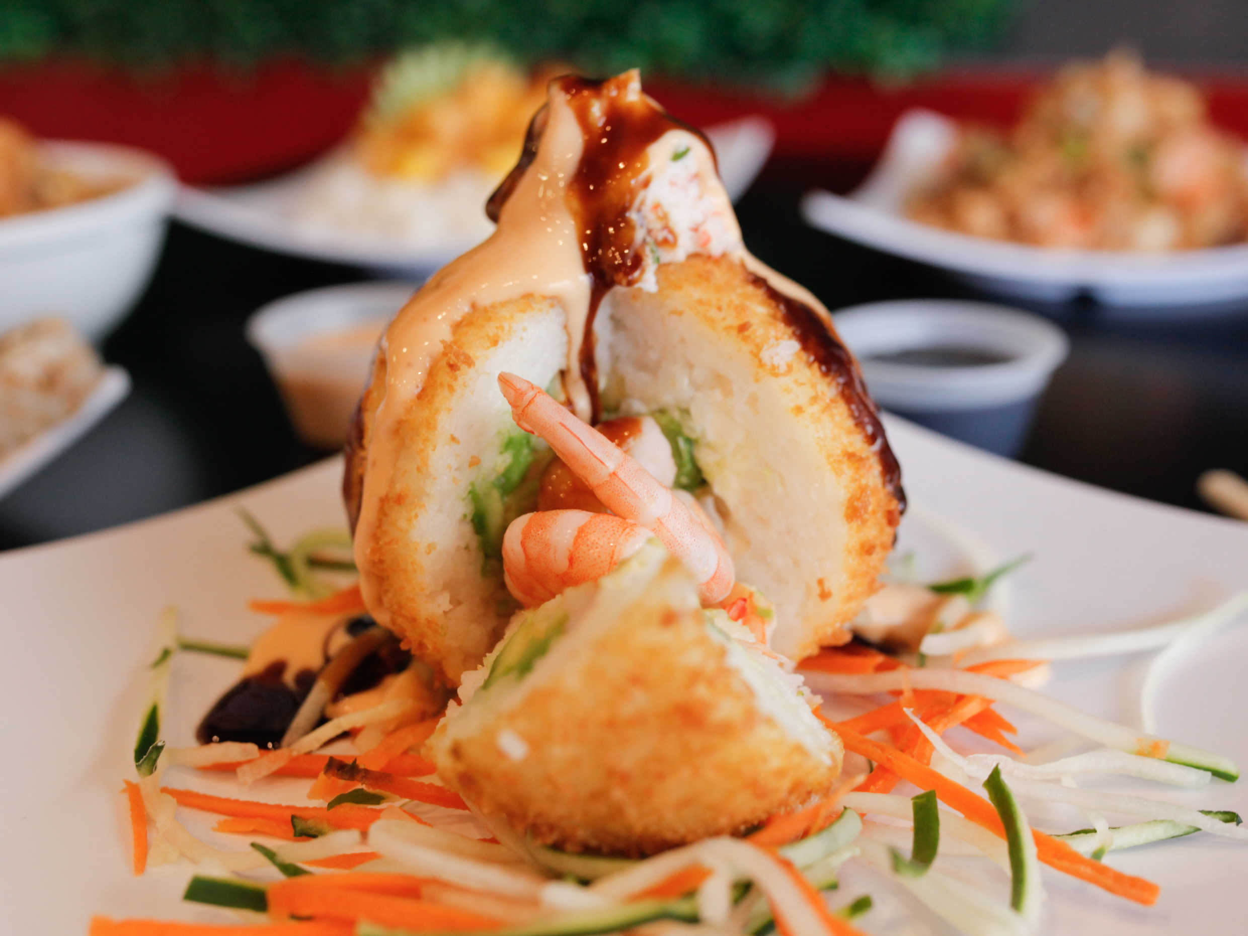 Bola de arroz empanizada, rellena de queso crema, aguacate y dos de sus ingredientes favoritos a elegir; tampico por fuera bañada en salsa de anguila y chipotle.