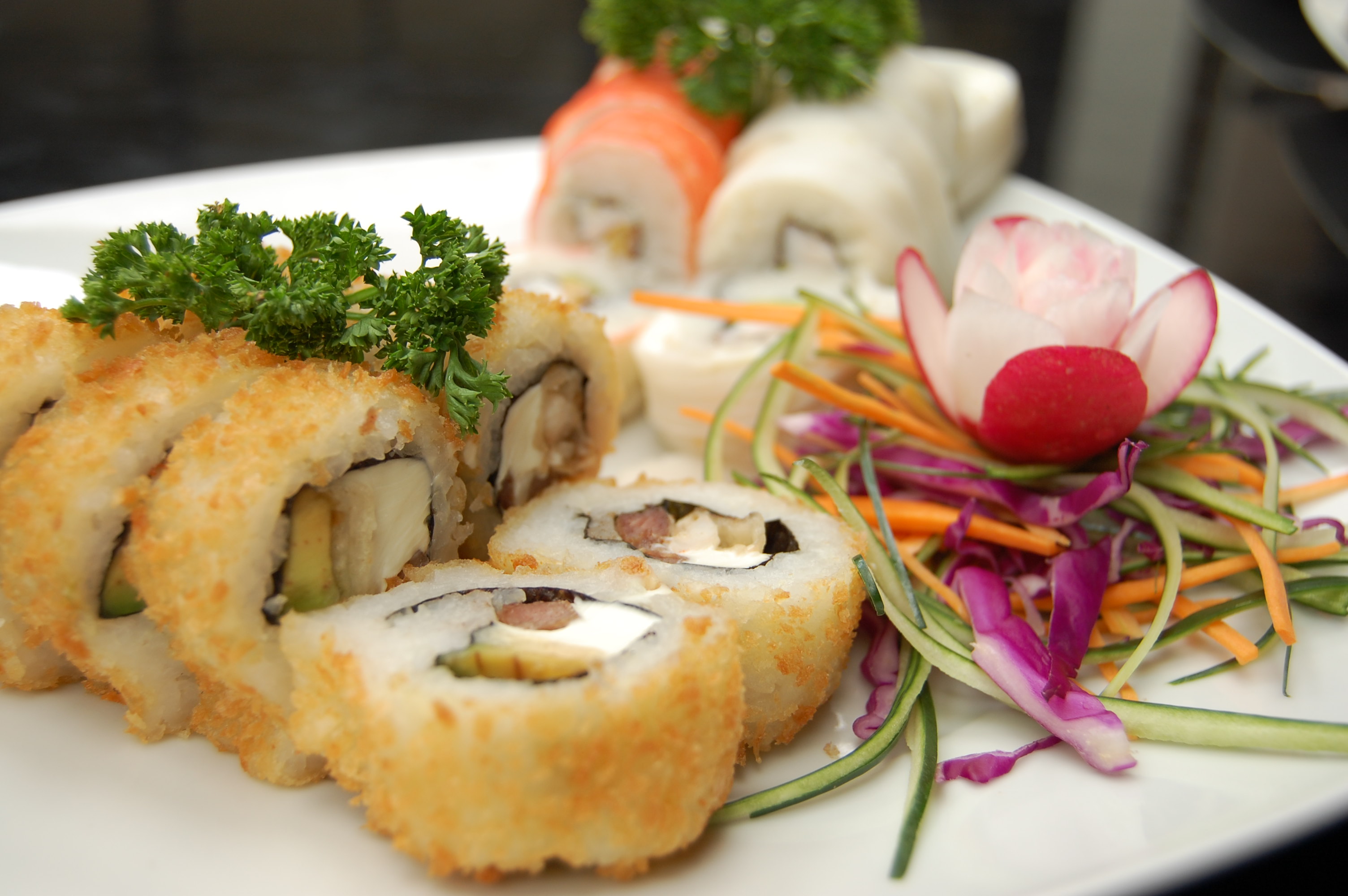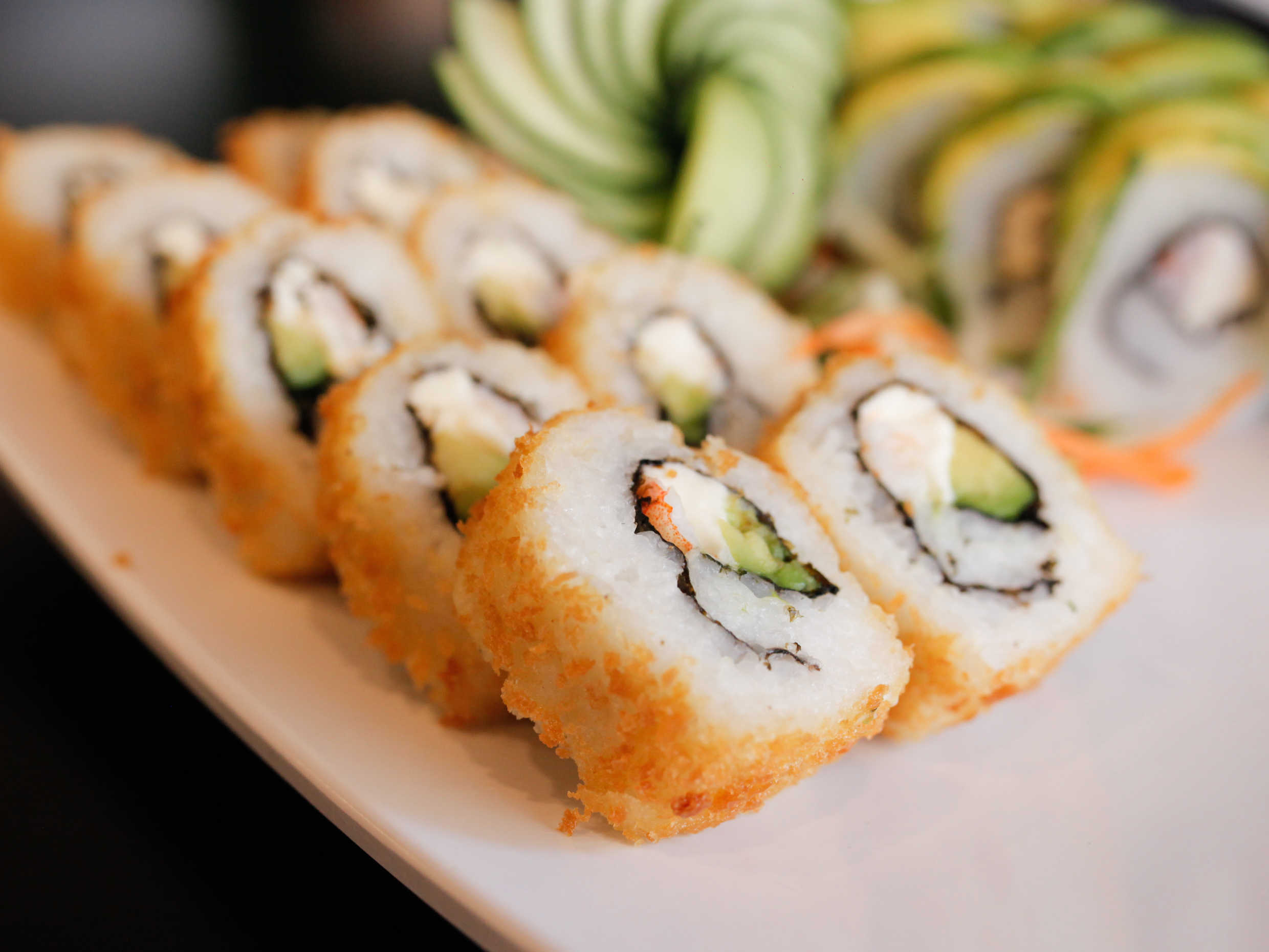 Pollo teriyaki, aguacate con philadelphia y toreados por fuera.