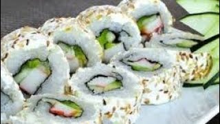 Cangrejo, pepino, aguacate, cubierto con ajonjolí.