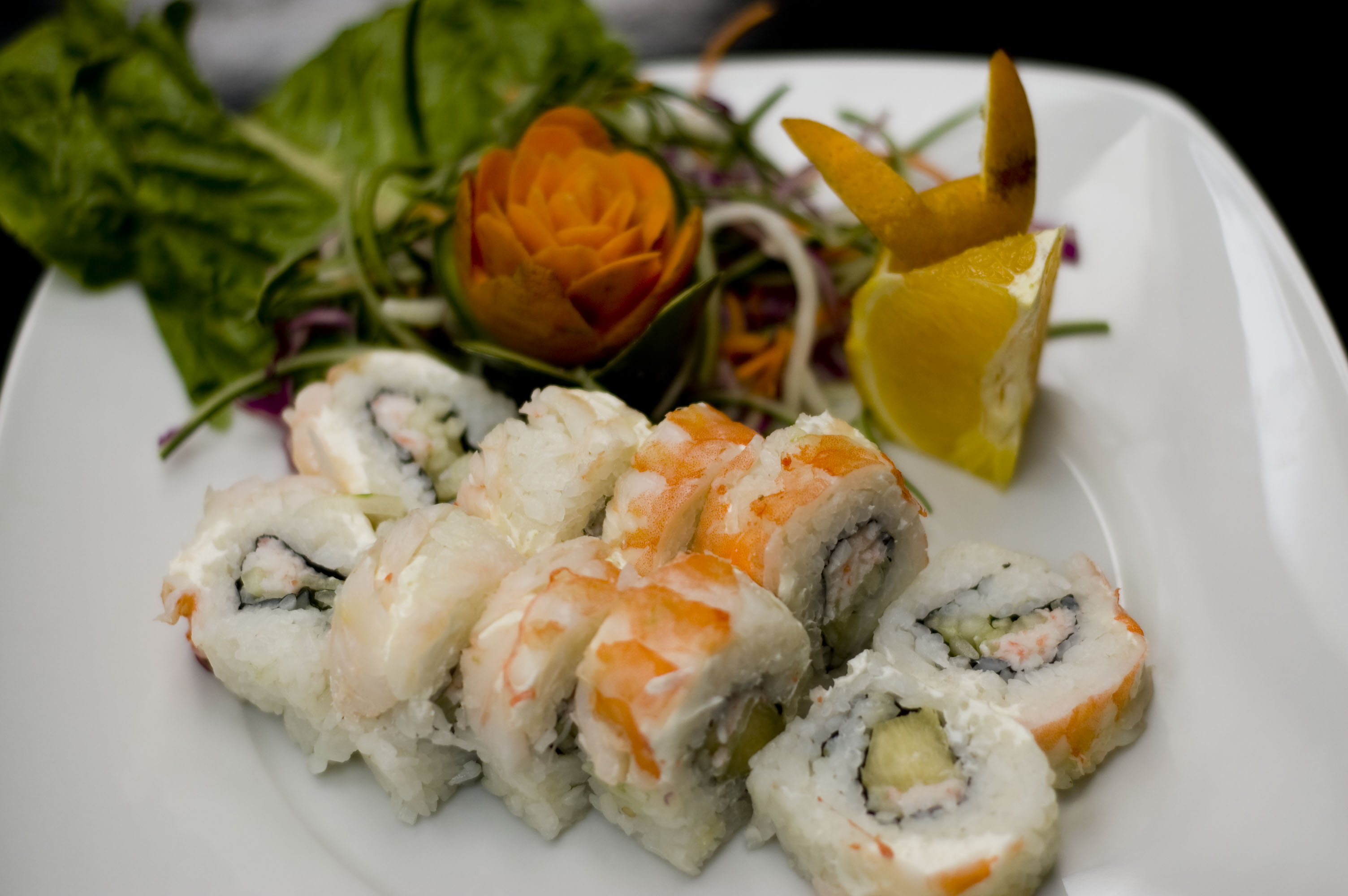 Cangrejo por fuera, camarón, aguacate y philadelphia.