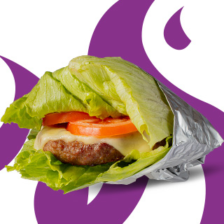 Jugosa carne de res fresca asada al carbón montada sobre hojas de lechuga fresca, acompañada de queso cheddar blanco delgadito, sabroso tomate, mayonesa, catsup y mostaza. No lleva pan, y porcion de papas francesas chicas gratis.