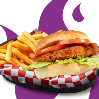 Deliciosa pechuga de pollo empanizada, lechuga fresca, jugoso tomate, mayonesa, catsup y mostaza, y porcion de papas francesas chicas gratis.