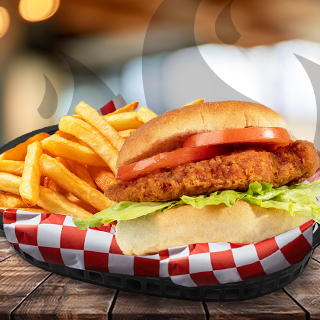 Deliciosa pechuga de pollo empanizada, lechuga fresca, jugoso tomate, mayonesa, catsup y mostaza, y porcion de papas francesas (chicas) , y refresco a elegir.