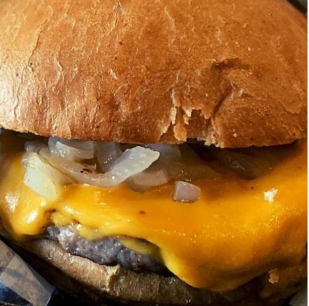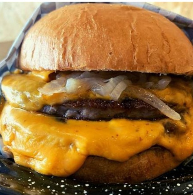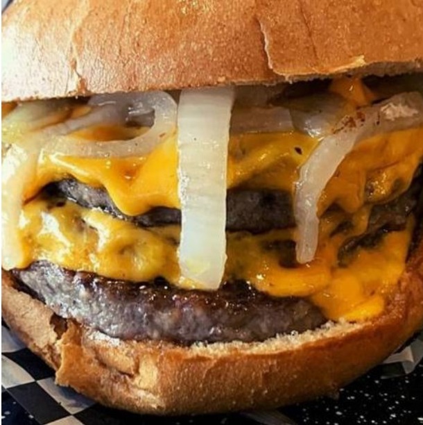 2 Carnes de 1/4 de libra de res, queso cheddar y cebolla caramelizada.