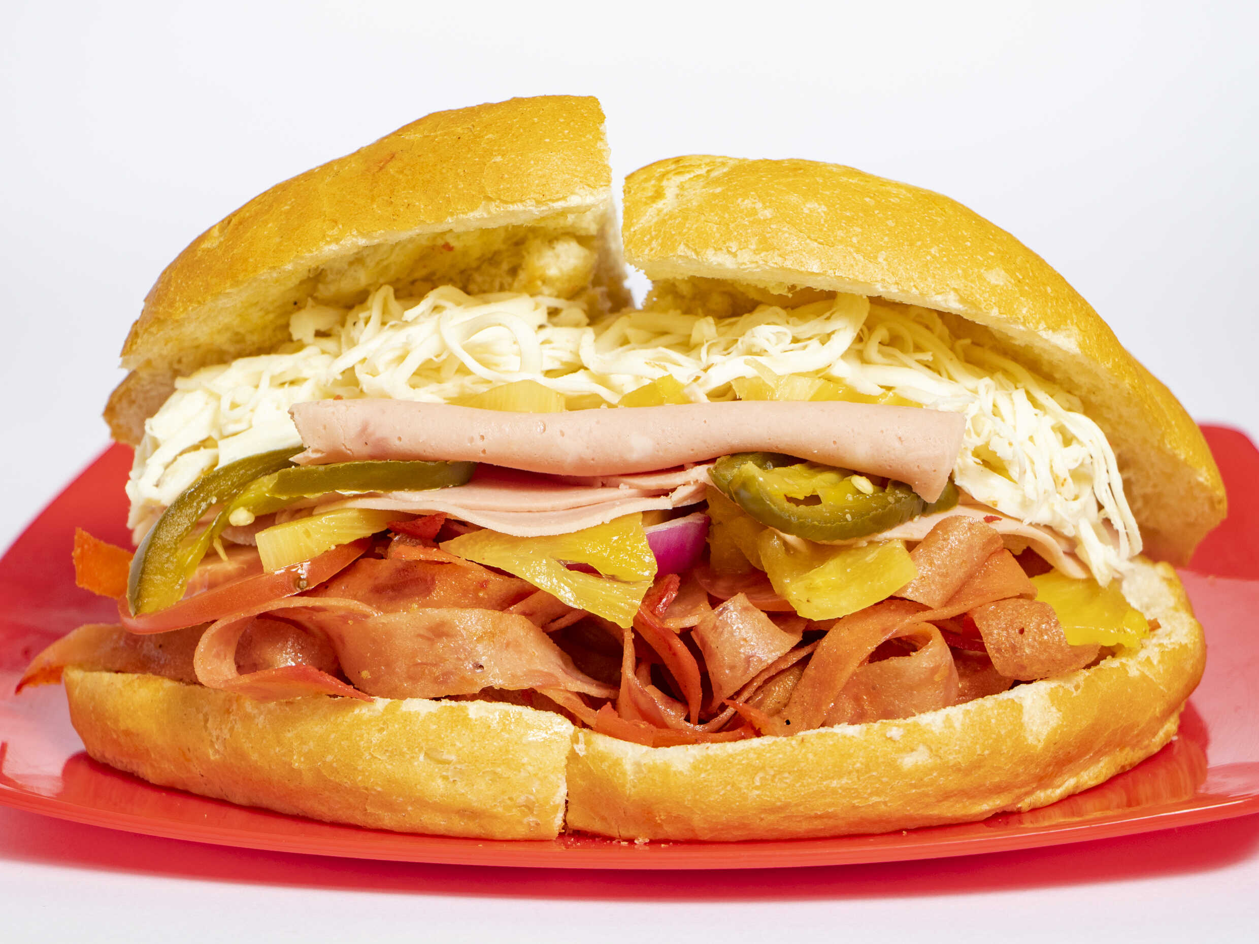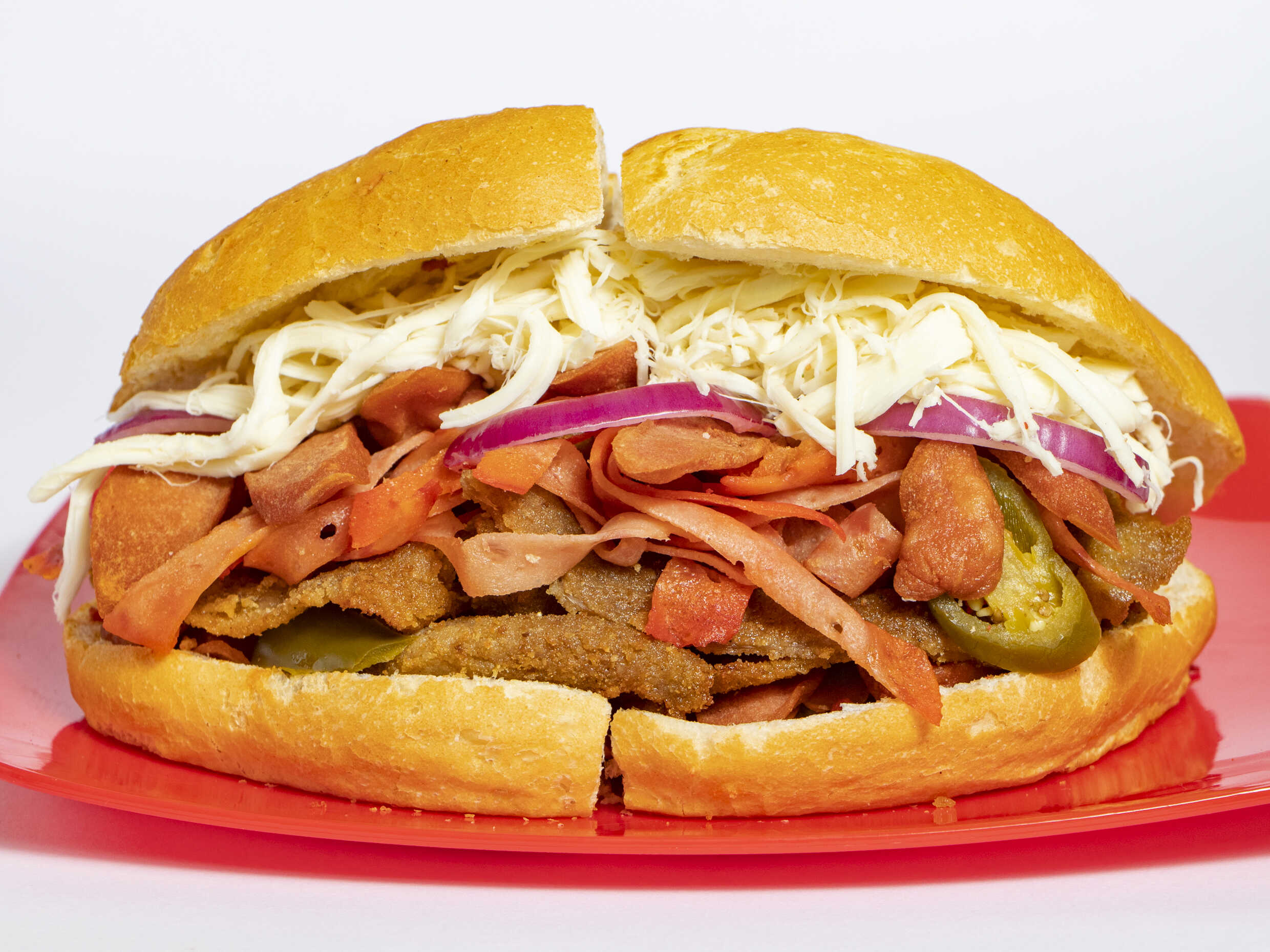 Jamón, queso blanco, queso amarillo y quesillo.