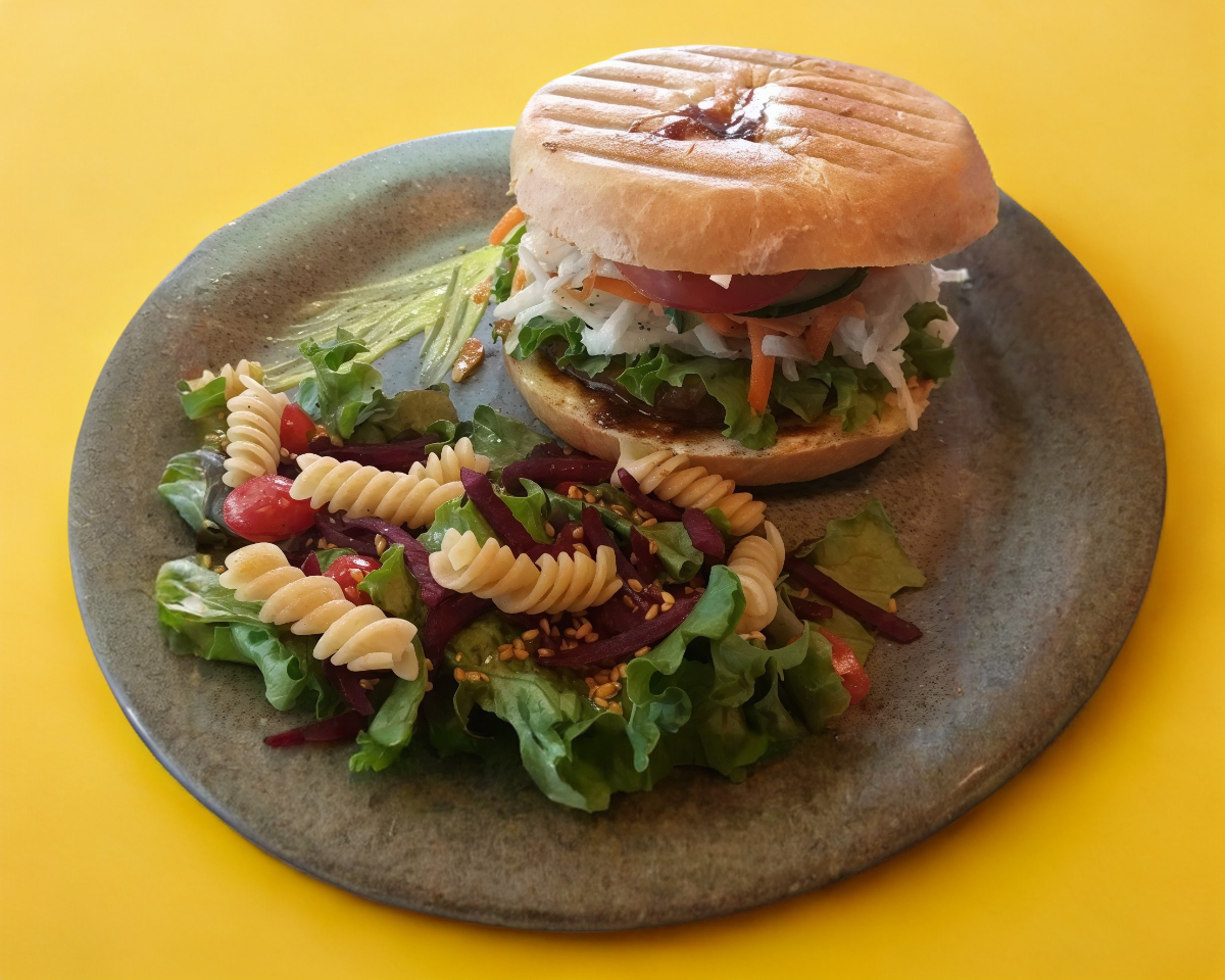 Pollo crunchy, queso gouda, zanahoria, germinado de alfalfa y lechuga con un toque de salsa BBQ.