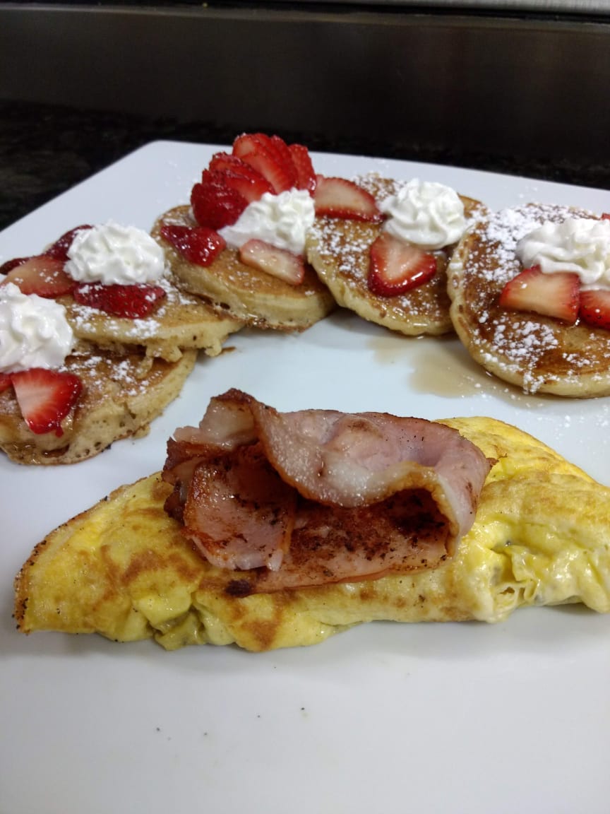 Con papas a la francesa, fruta de entrada y cafe refill.