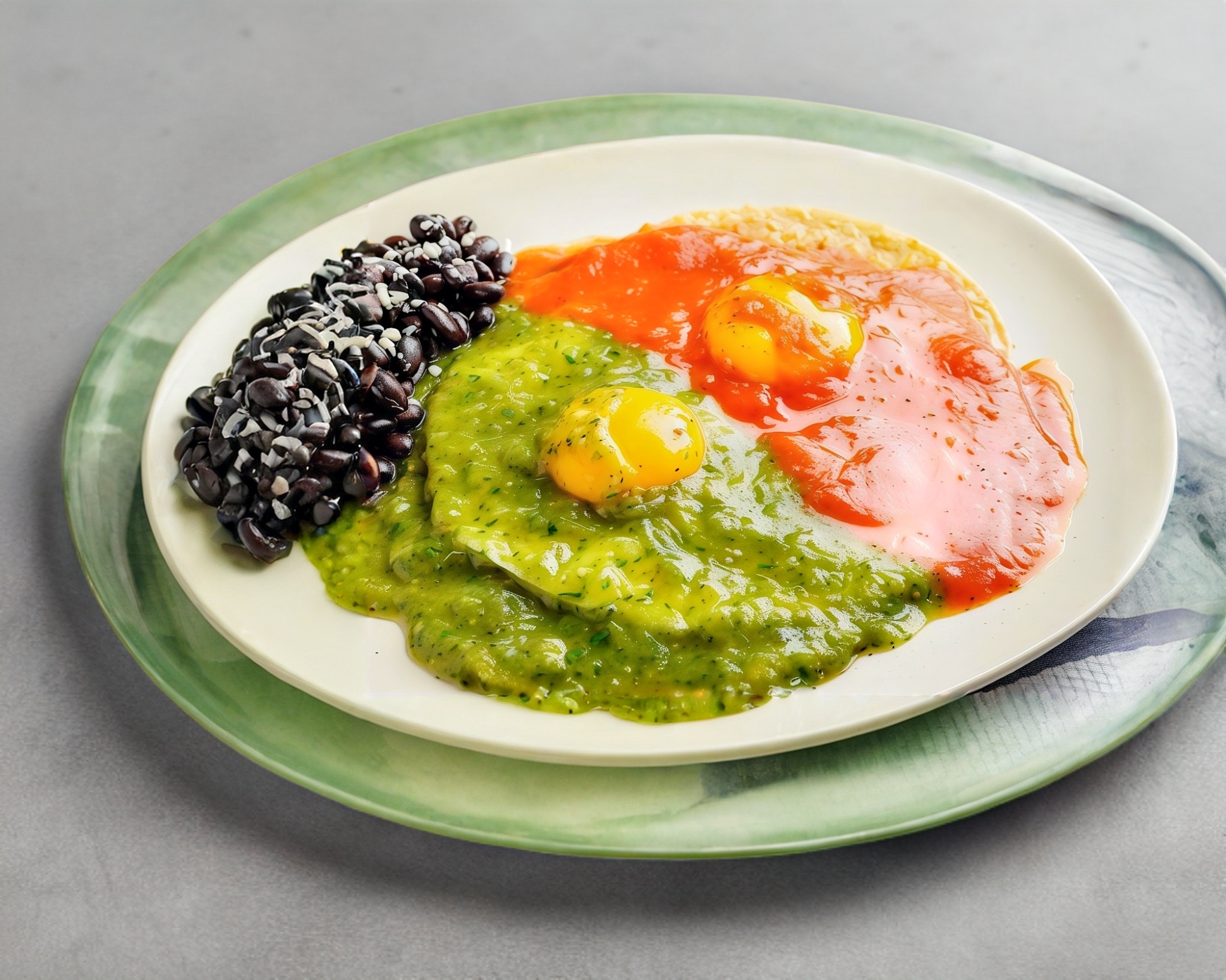 Incluye café de olla o más extra cámbialo por jugo de naranja. Tortillas de maíz, bañados con salsa de frijol, cebolla y queso rallado panela.