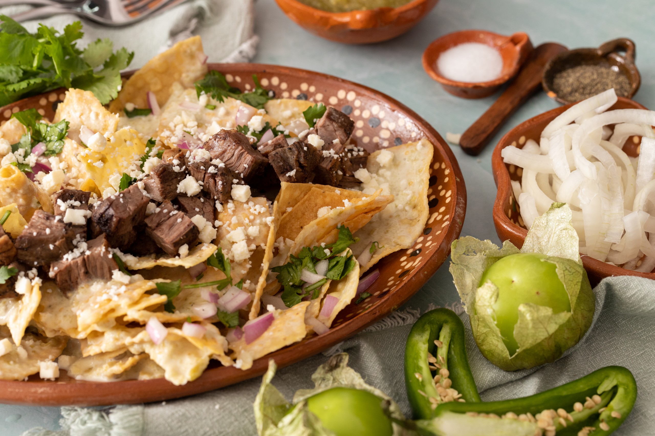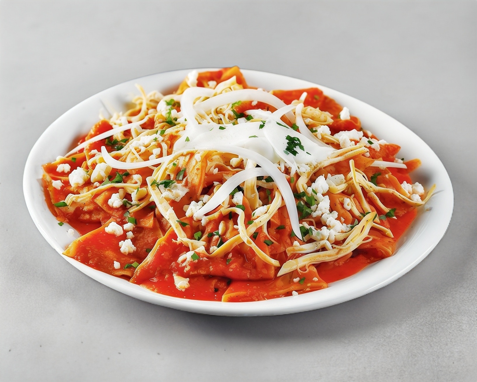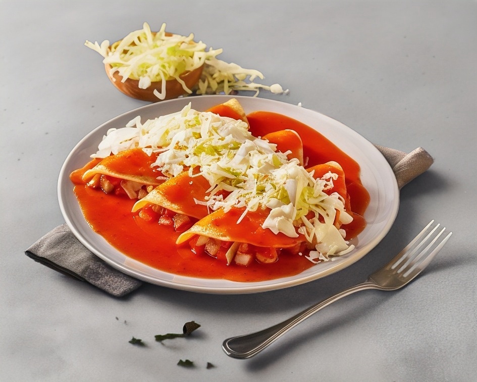 Incluye café de olla o más extra cámbialo por jugo de naranja. Tortillas de maíz, bañados con mole rojo, cebolla y queso rallado panela.