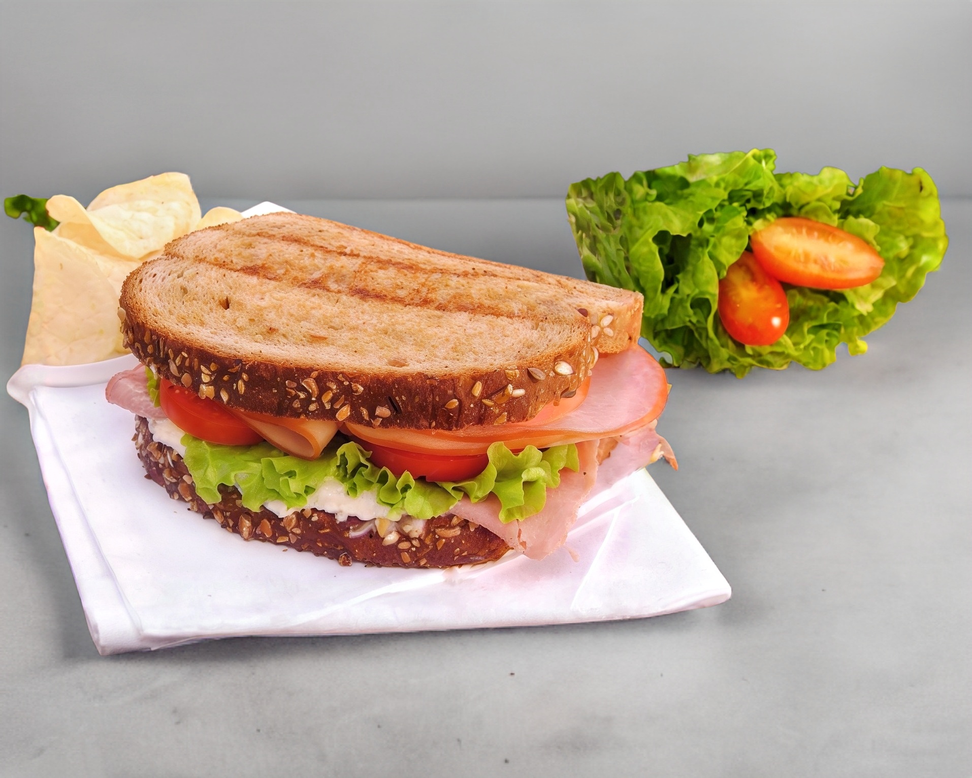 Incluye café de olla o más extra cámbialo por jugo de naranja. Pan integral a la plancha, mayonesa, mostaza, lechuga, jitomate, cebolla, aguacate, rajas de jalapeño o salsa de chipotle.
