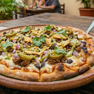 Nuestra Pizza Mexicana es el balance perfecto entre lo salado y lo dulce, horneada hasta que los bordes quedan doraditos y crujientes.