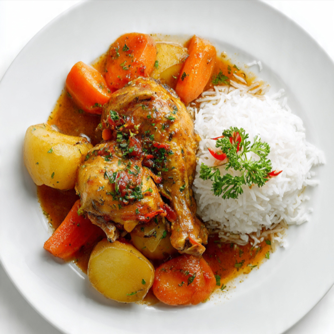 Pollo en Salsa con Legumes