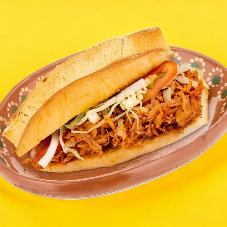 2 tortas de pierna española con quesillo frijoles mayonesa jitomate aguacate y cebolla picante aparte