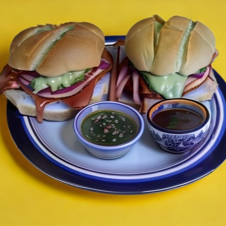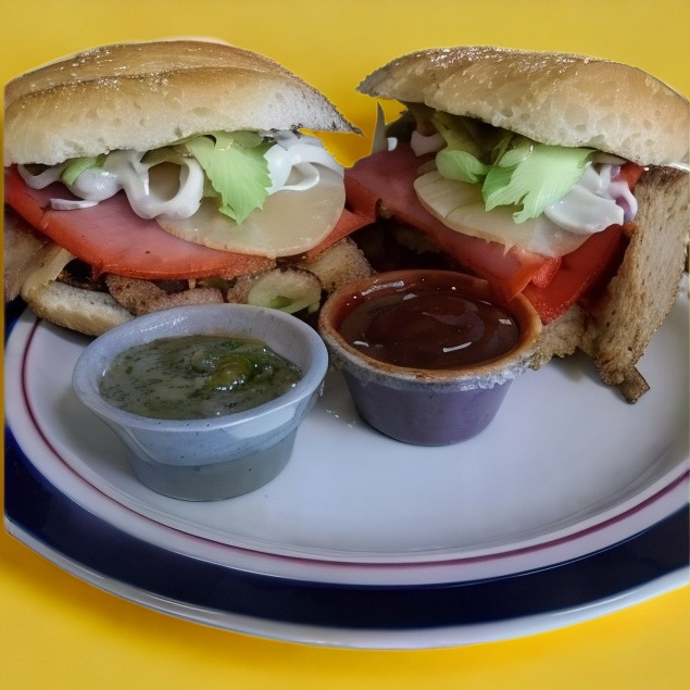 2 tortas de milanesa con quesillo tiene frijoles mayonesa jitomate aguacate cebolla picante aparte