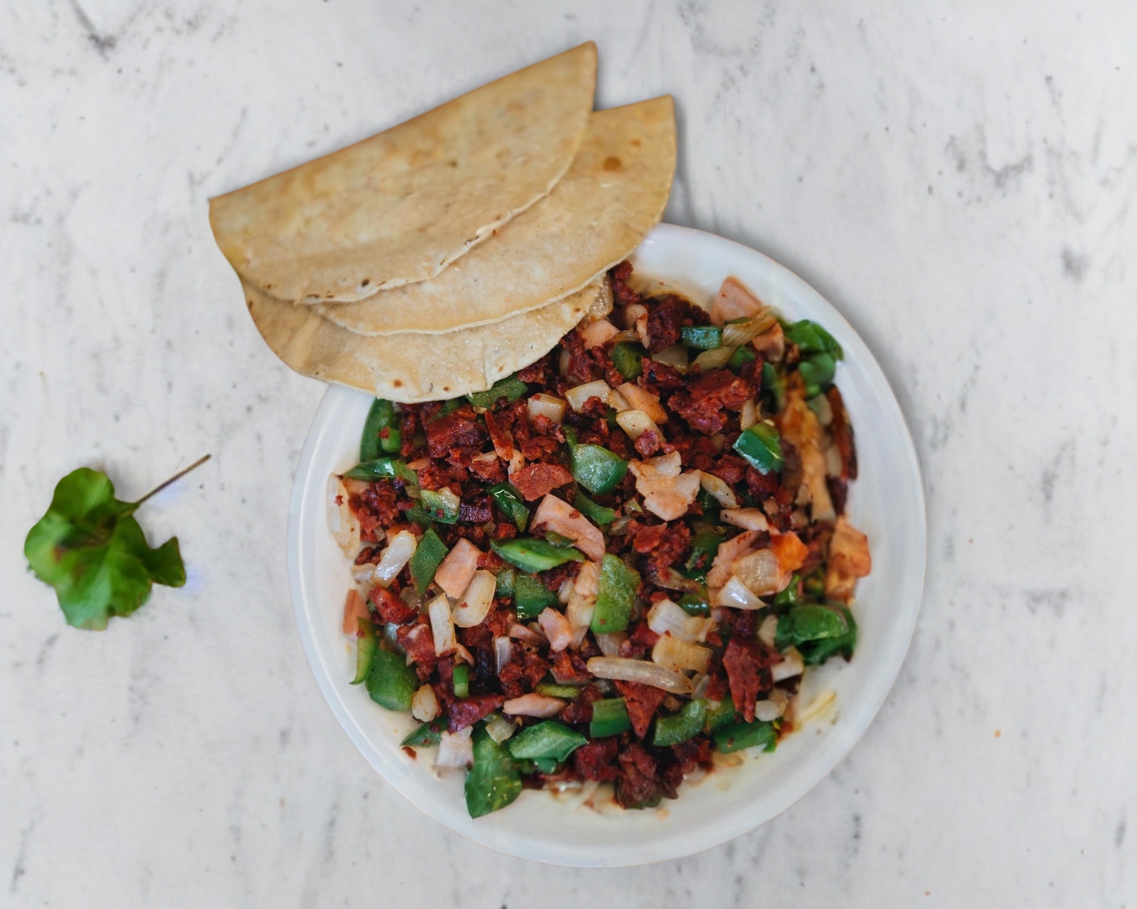 Todos los alambres se preparan con pimiento morrón, cebolla, jamón de pierna y pavo, queso Oaxaca y se sirven con tortillas.