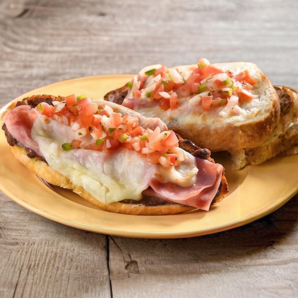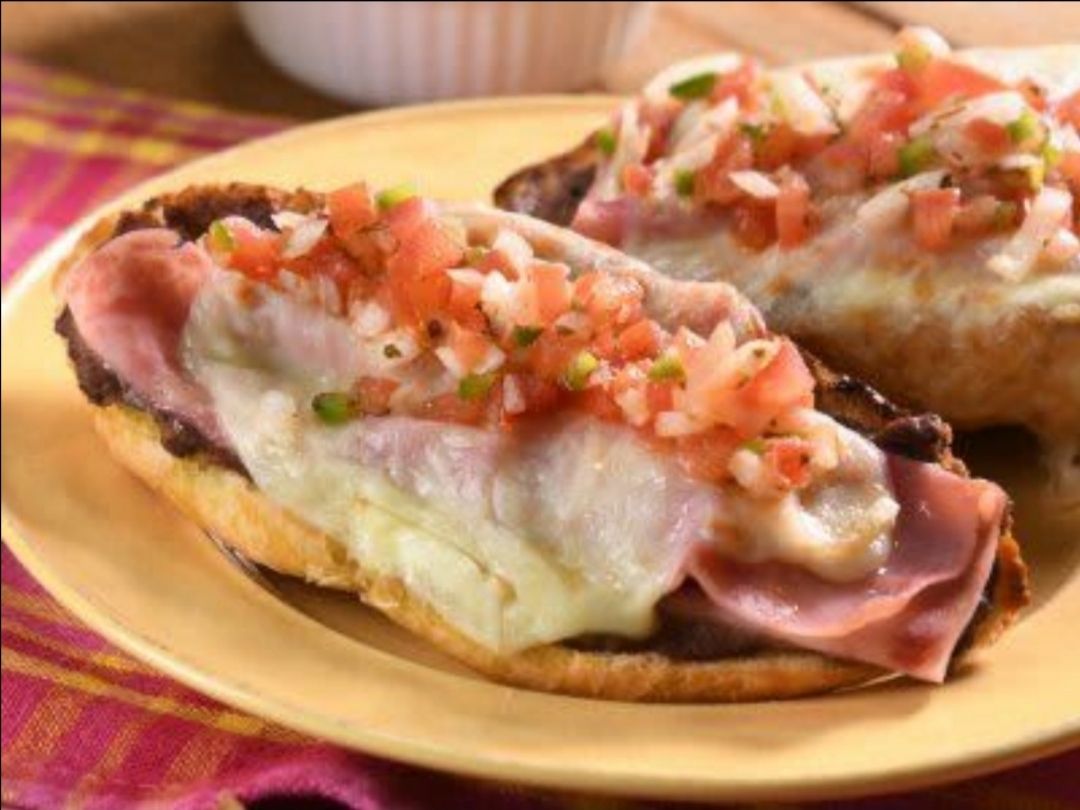 Pimientos, cebolla, carnes frías, Bistec o pollo y queso fundido.